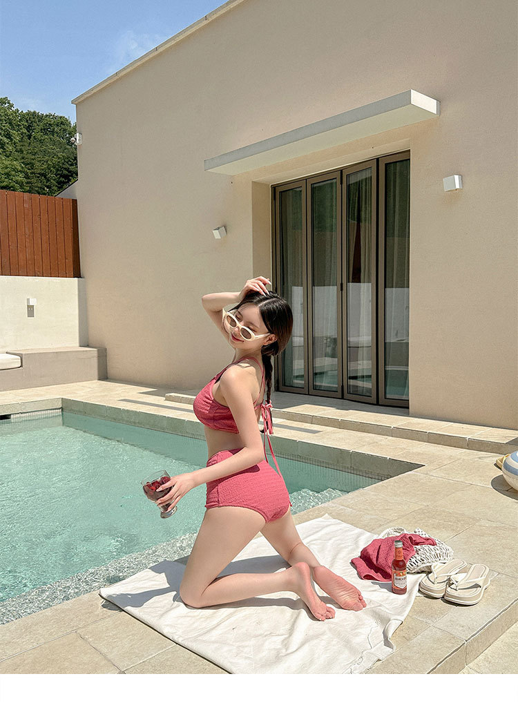 Ins 스타일 한국 새로운 솔리드 컬러 스플릿 3 피스 수영복 여성 백리스 섹시 스커트 휴가 수영복 여성의 새로운 도착