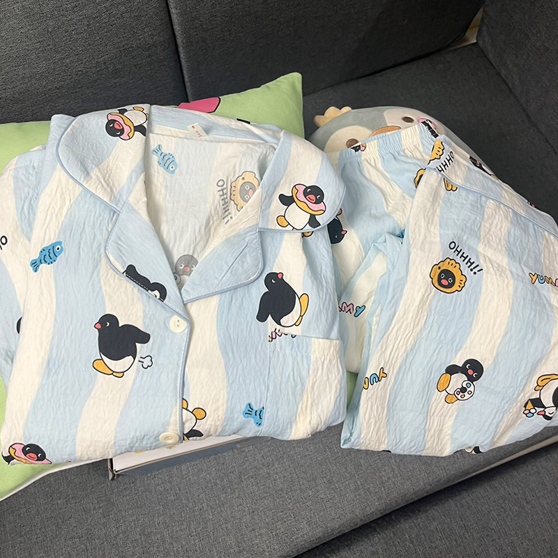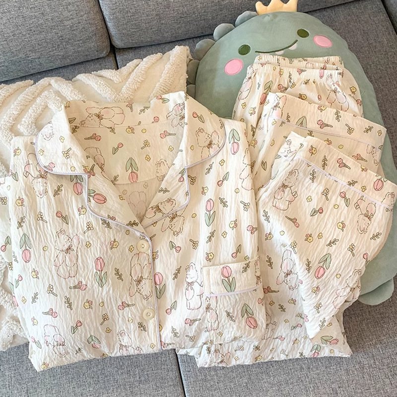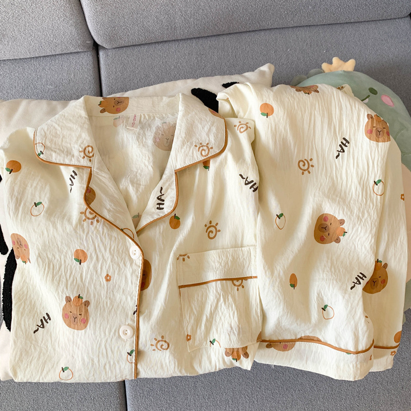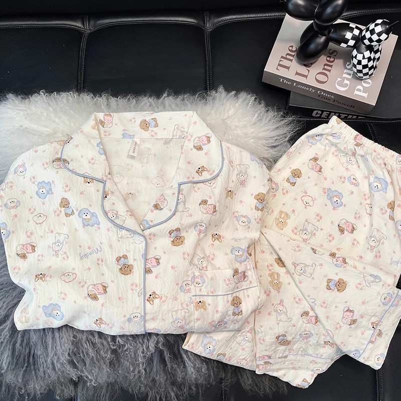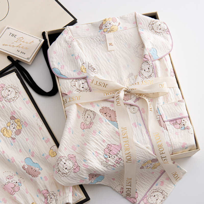 2025 새로운 면 거즈 봄과 가을 잠옷 여성의 여름 긴 소매 만화 일본 강아지 귀여운 느슨한 집 옷스토어 가기