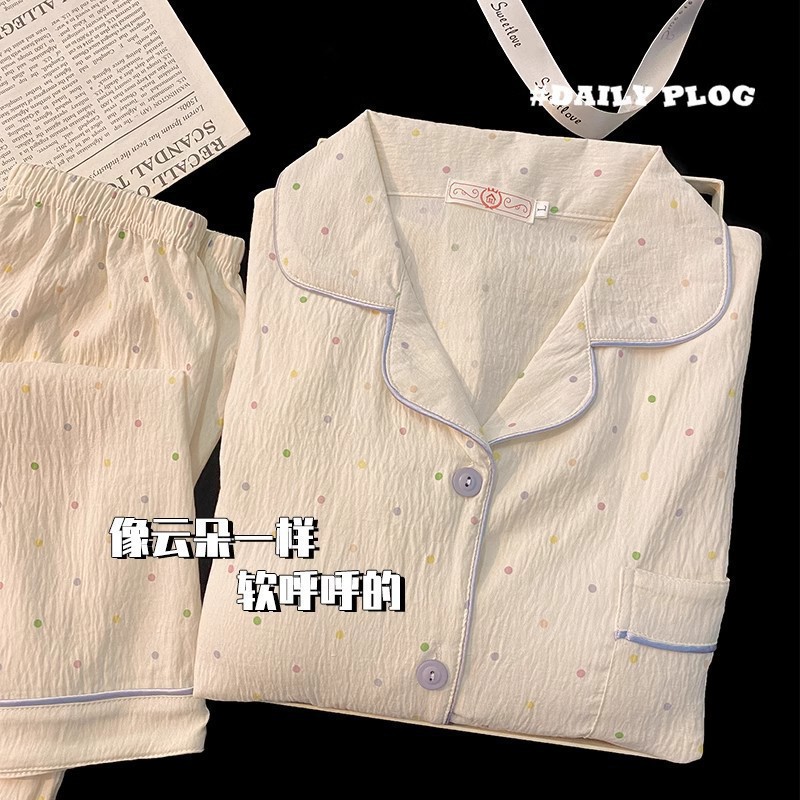 2025 새로운 면 거즈 봄과 가을 잠옷 여성의 여름 긴 소매 만화 일본 강아지 귀여운 느슨한 집 옷