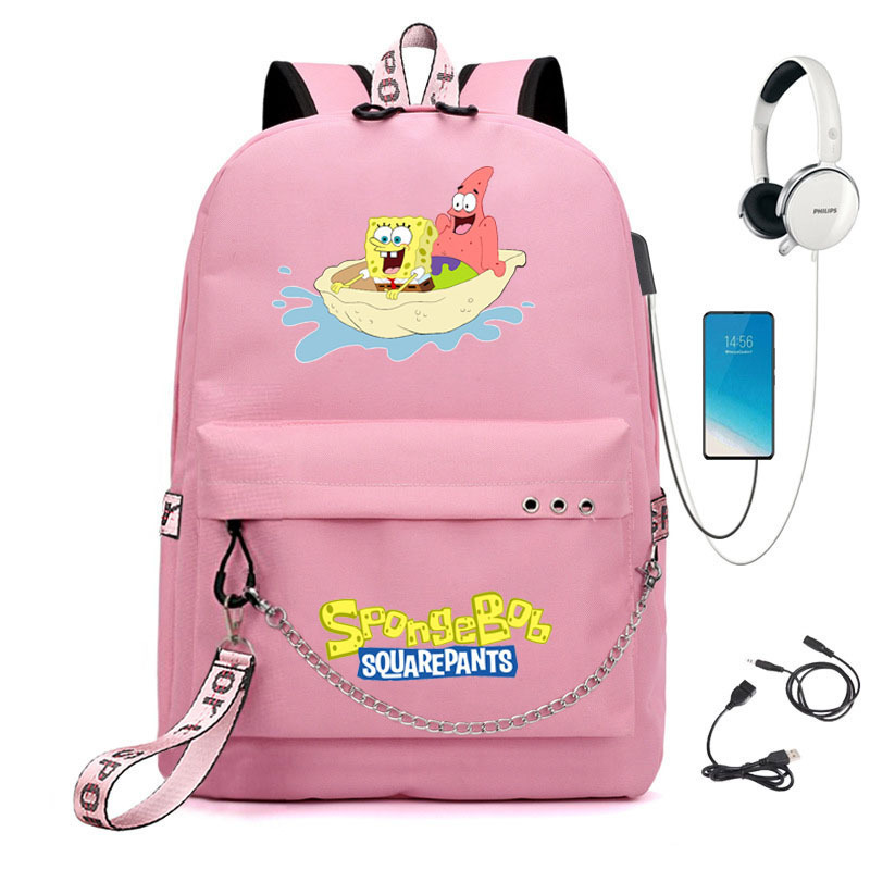 [국경 간 출처] 독립역 스폰지밥 인쇄 스쿨백 체인 USB 배낭 학교 시즌 여행 가방
