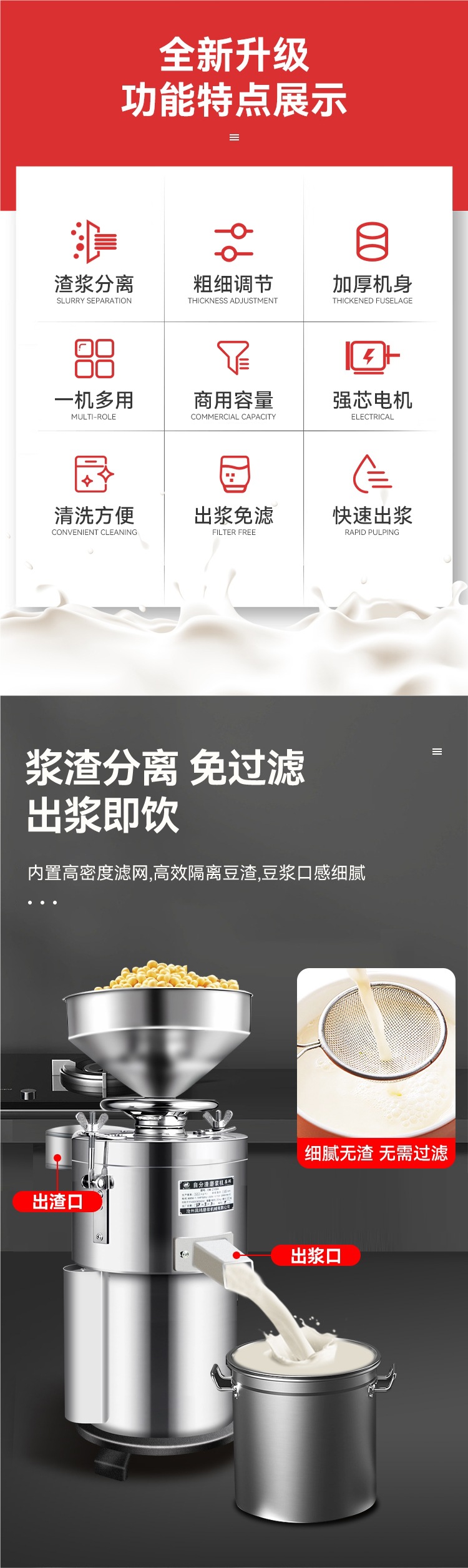 두유 기계 상업용 건조하고 젖은 이중 사용 완전 자동 콩 두부 기계 연삭 기계 슬래그 슬러리 분리 아침 식사 상점 새로운 펄핑 기계