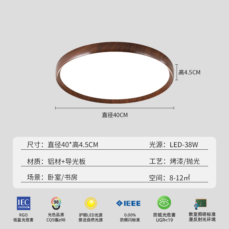 • [업그레이드된 알루미늄 풀 스펙트럼] 월넛 컬러-라운드-40CM-38W
