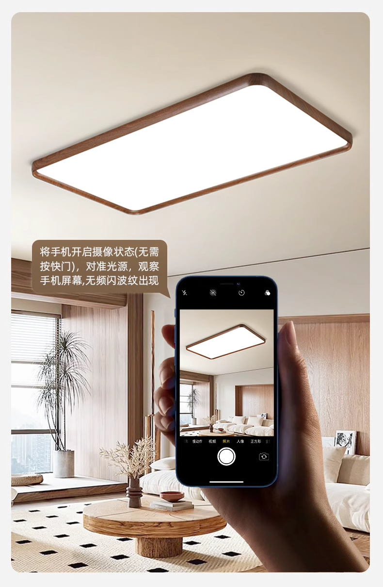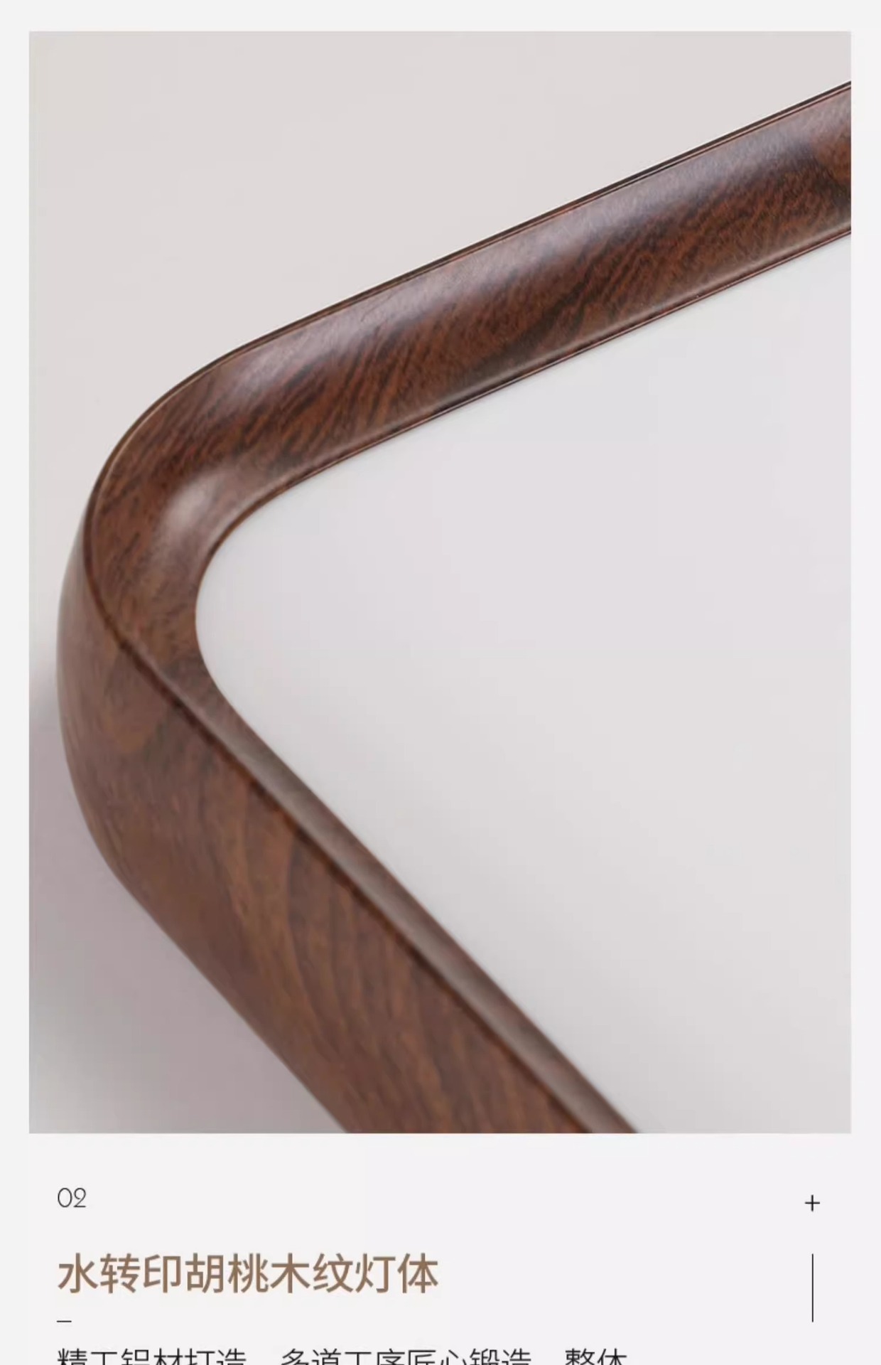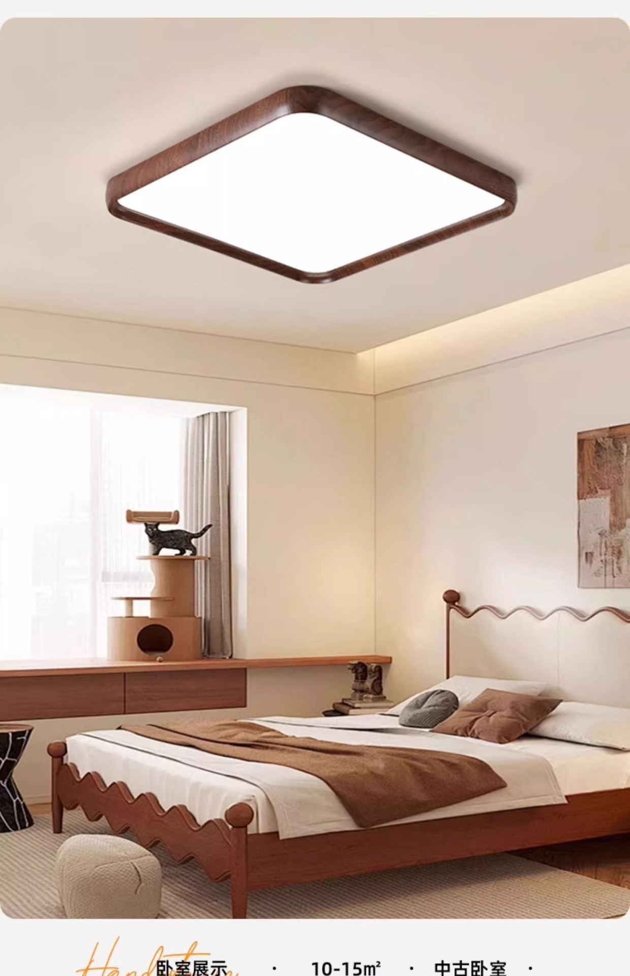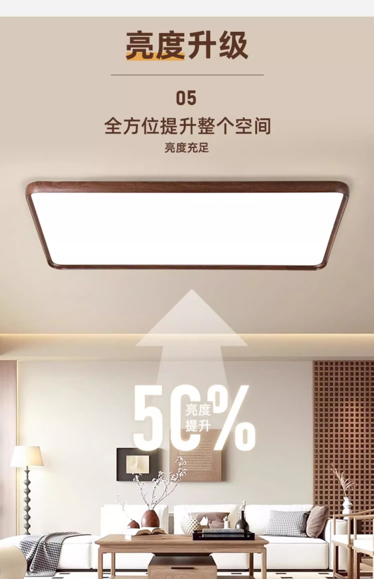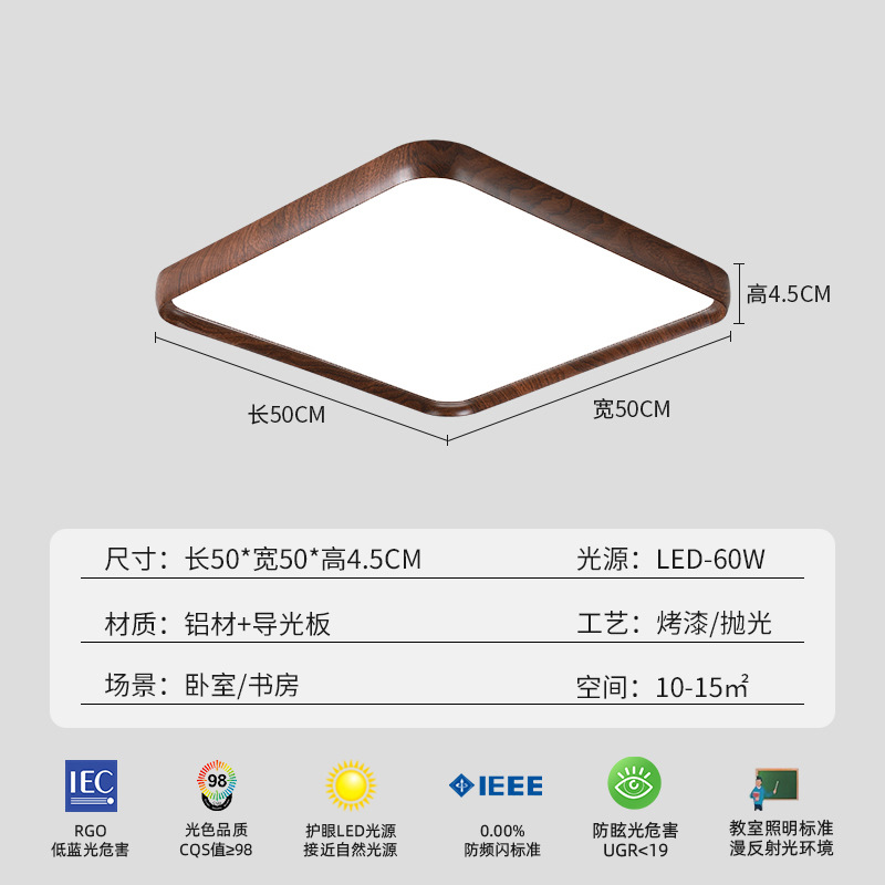 새로운 중국 호두 나뭇결 거실 천장 램프 초박형 원활한 최고 지능형 전체 스펙트럼 눈 보호 룸 램프