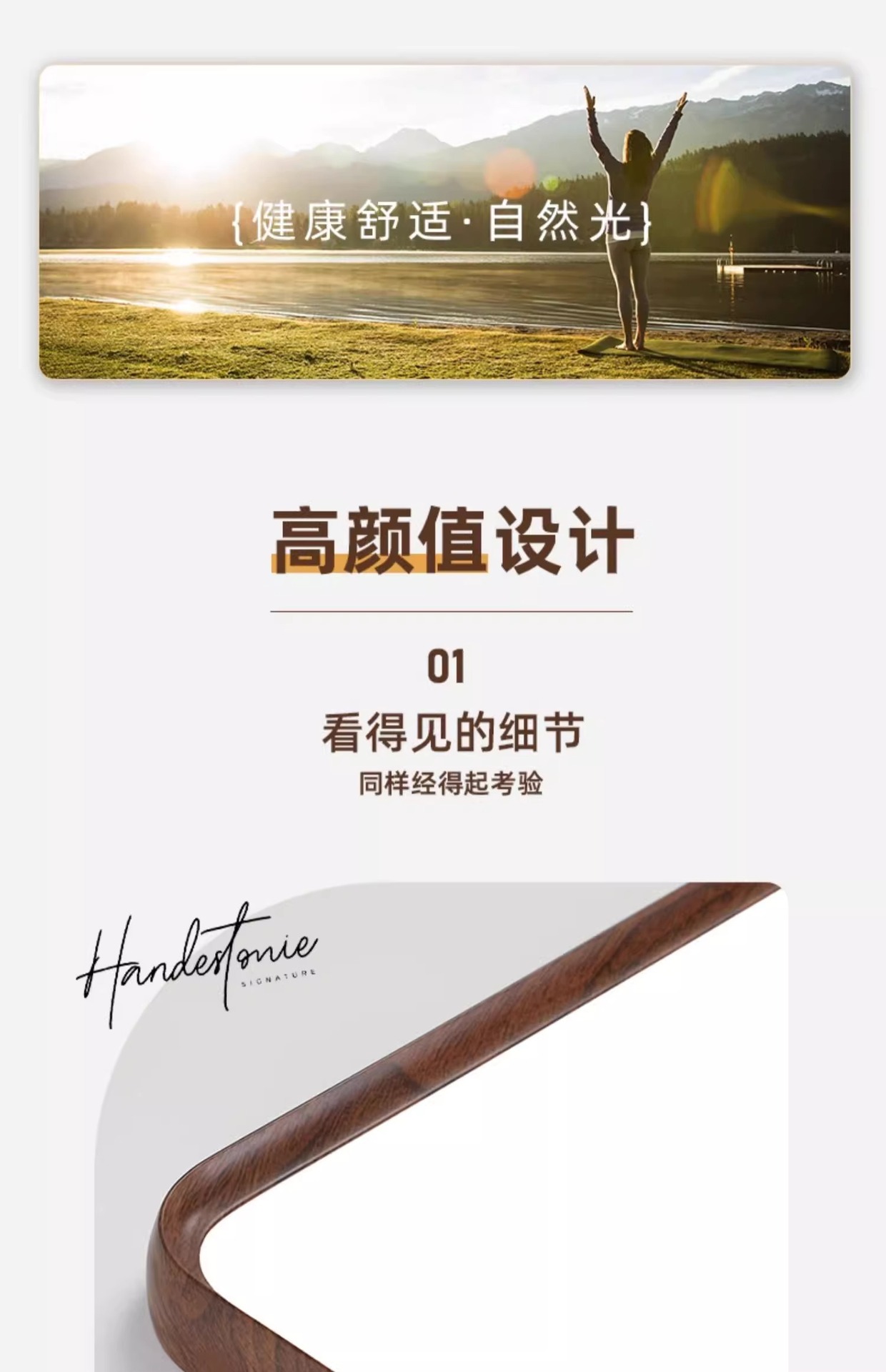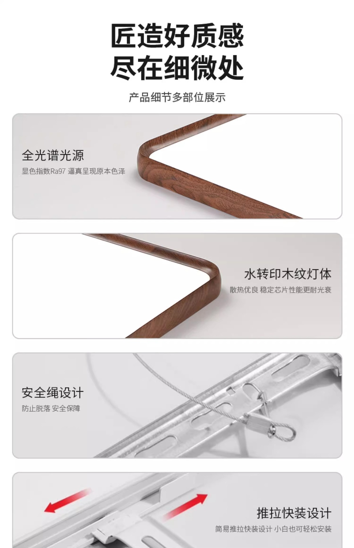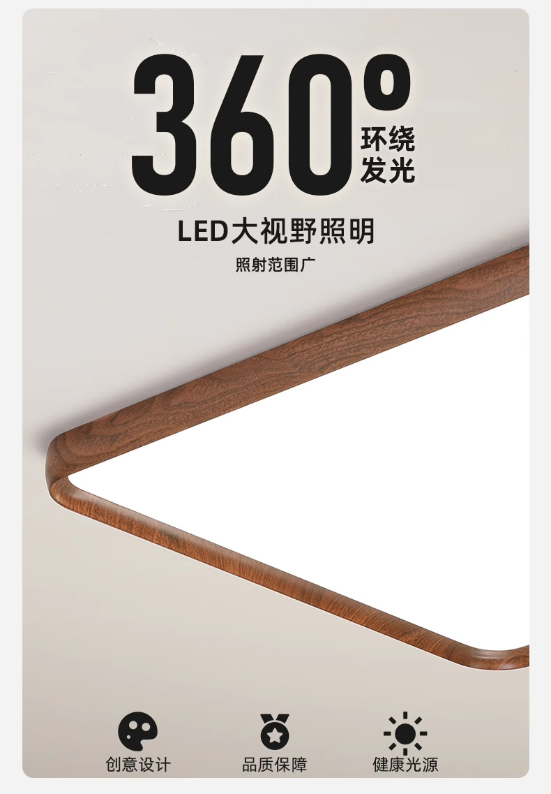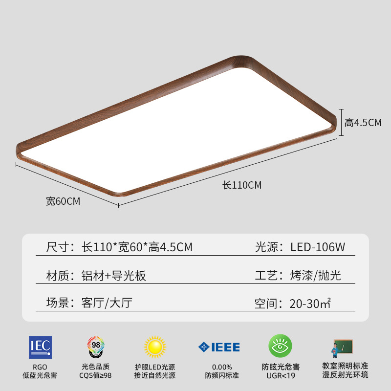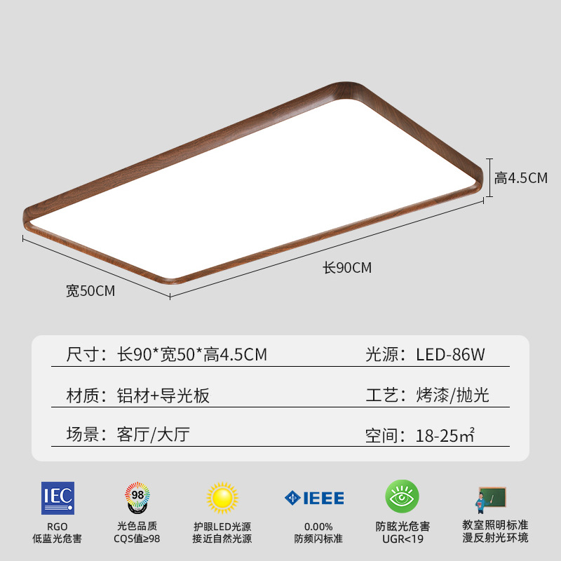 새로운 중국 호두 나뭇결 거실 천장 램프 초박형 원활한 최고 지능형 전체 스펙트럼 눈 보호 룸 램프