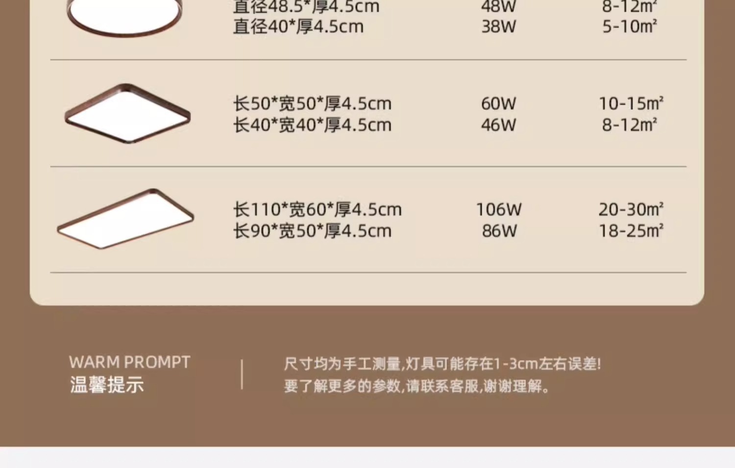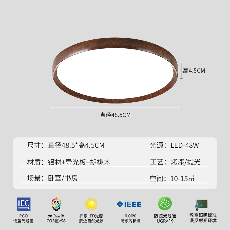 • [업그레이드된 알루미늄 풀 스펙트럼] 월넛 컬러-라운드-48.5CM-48W