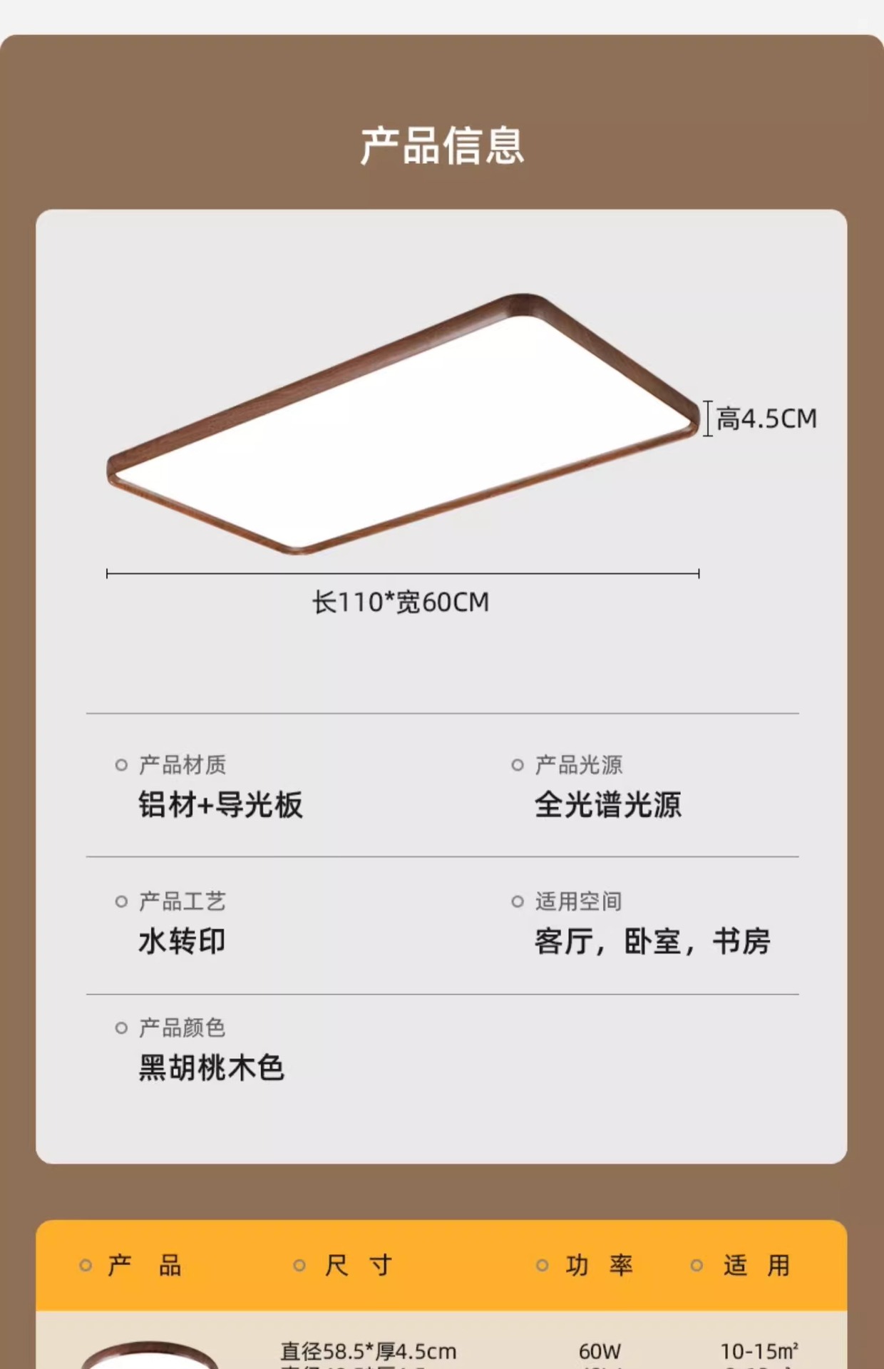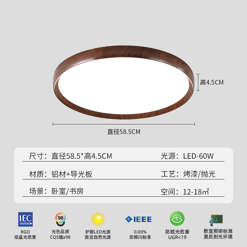 • [업그레이드된 알루미늄 풀 스펙트럼] 월넛 컬러-라운드-58.5CM-60W