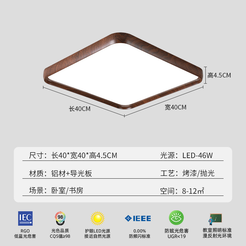 • [업그레이드된 알루미늄 풀 스펙트럼] 월넛 컬러-스퀘어-40CM-46W