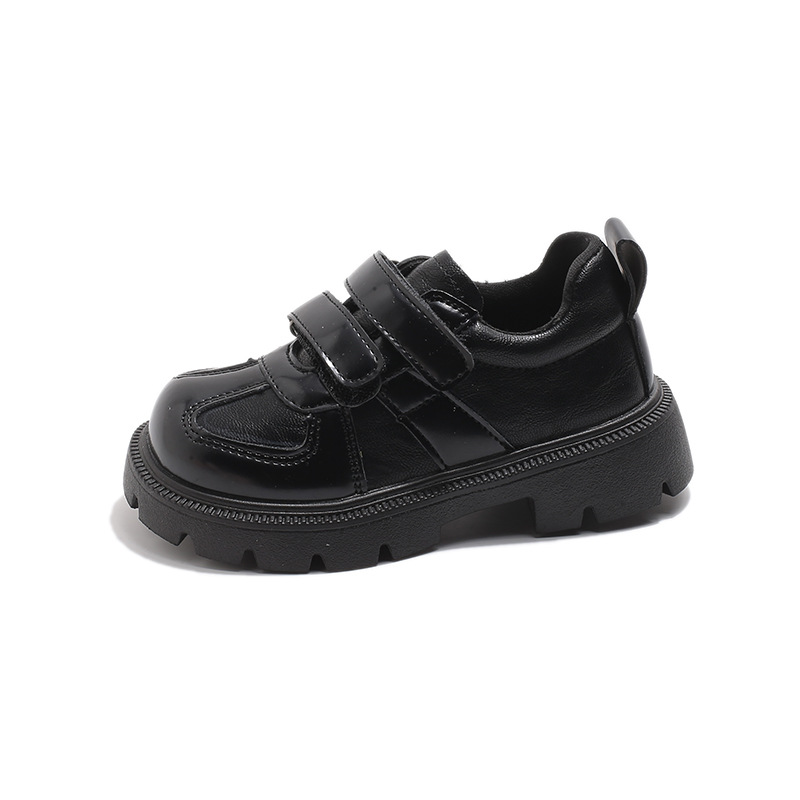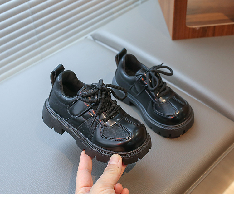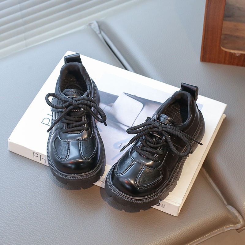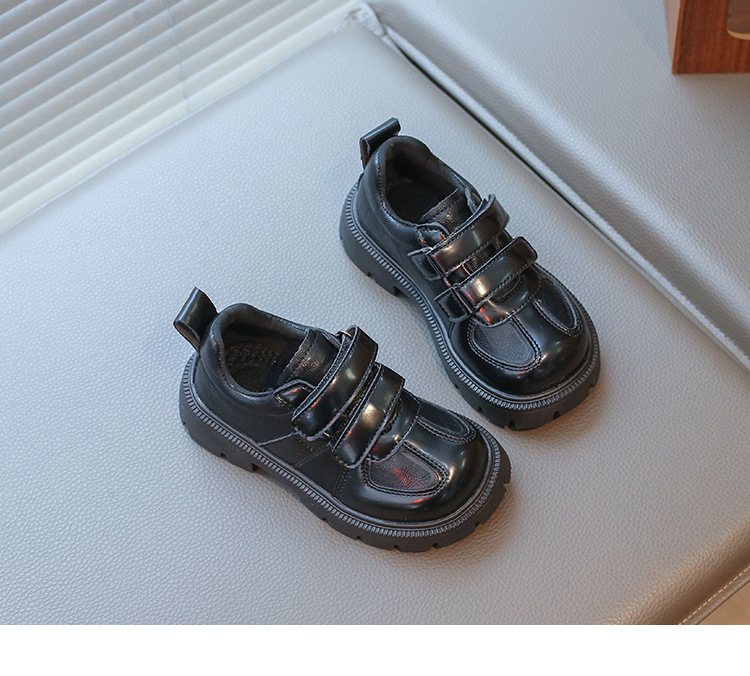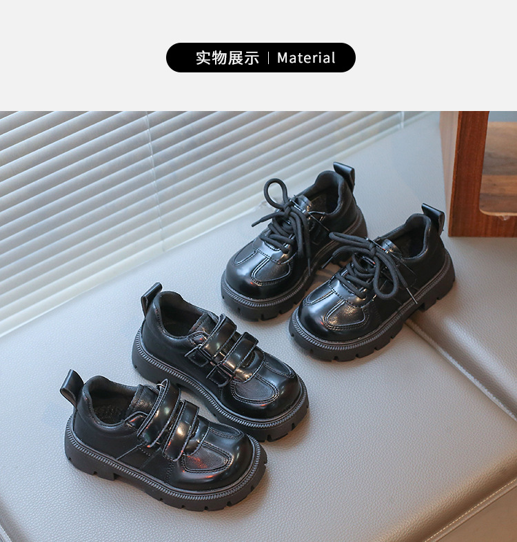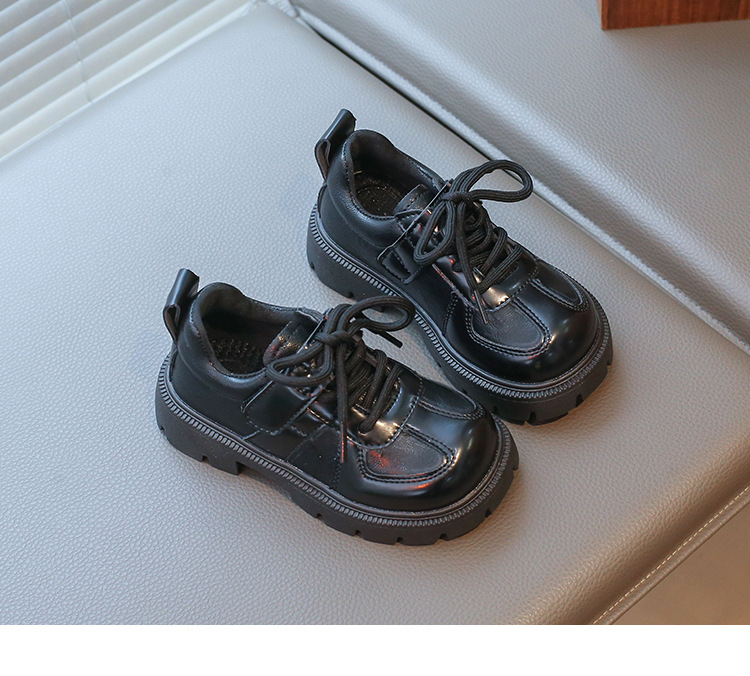 어린이 영국 스타일의 검은 가죽 신발 2025 봄 새로운 소녀 패션 올 매치 싱글 레이어 신발 큰 어린이 콩 신발스토어 가기
