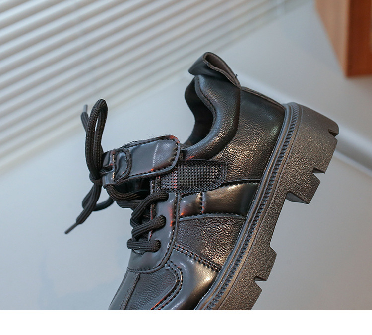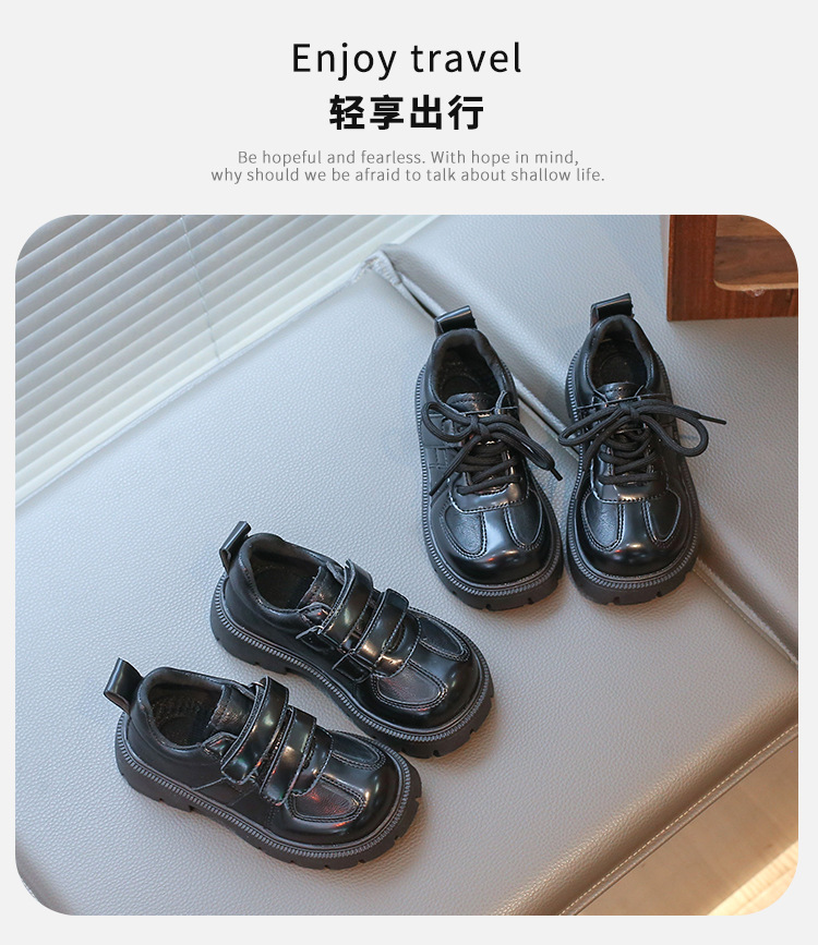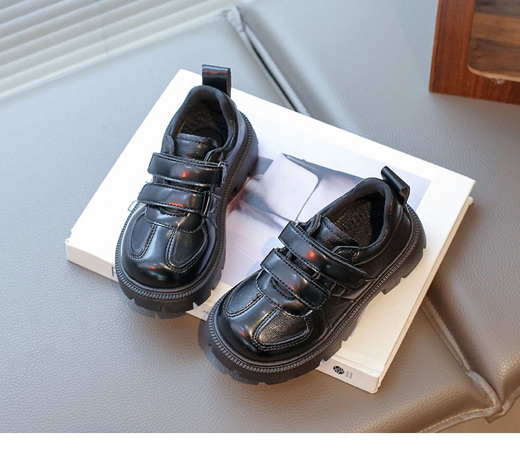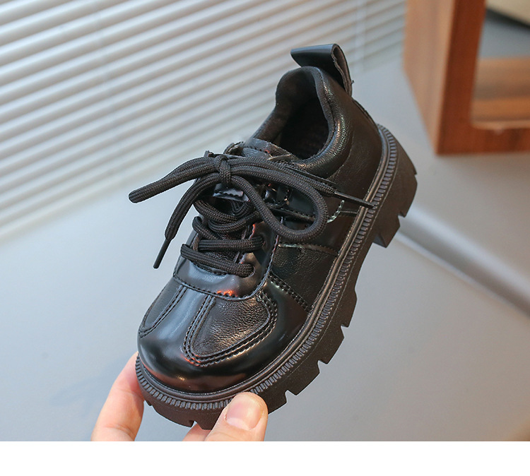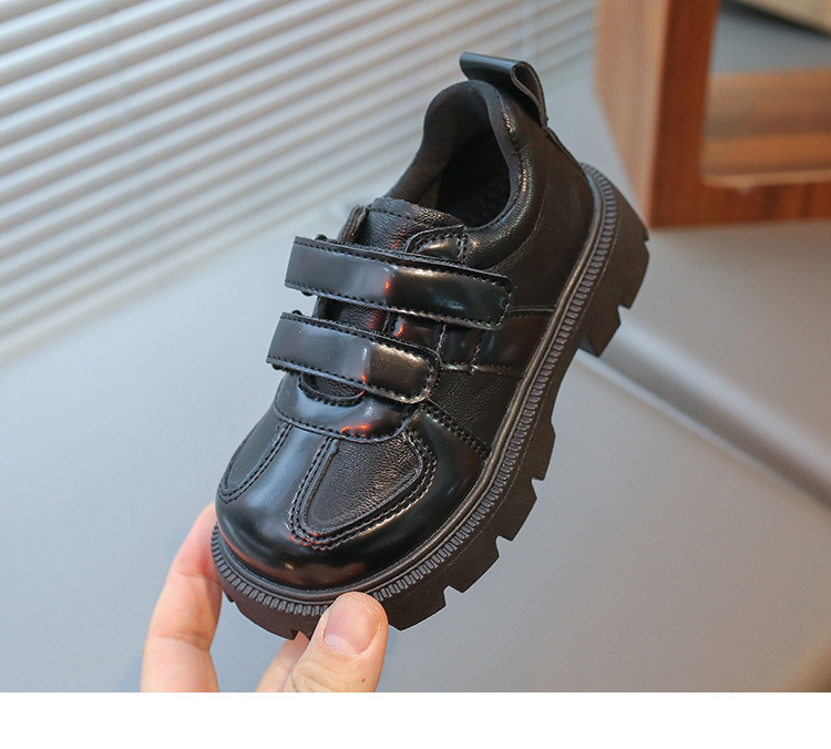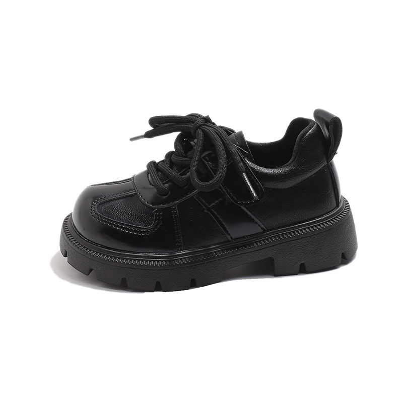 어린이 영국 스타일의 검은 가죽 신발 2025 봄 새로운 소녀 패션 올 매치 싱글 레이어 신발 큰 어린이 콩 신발스토어 가기