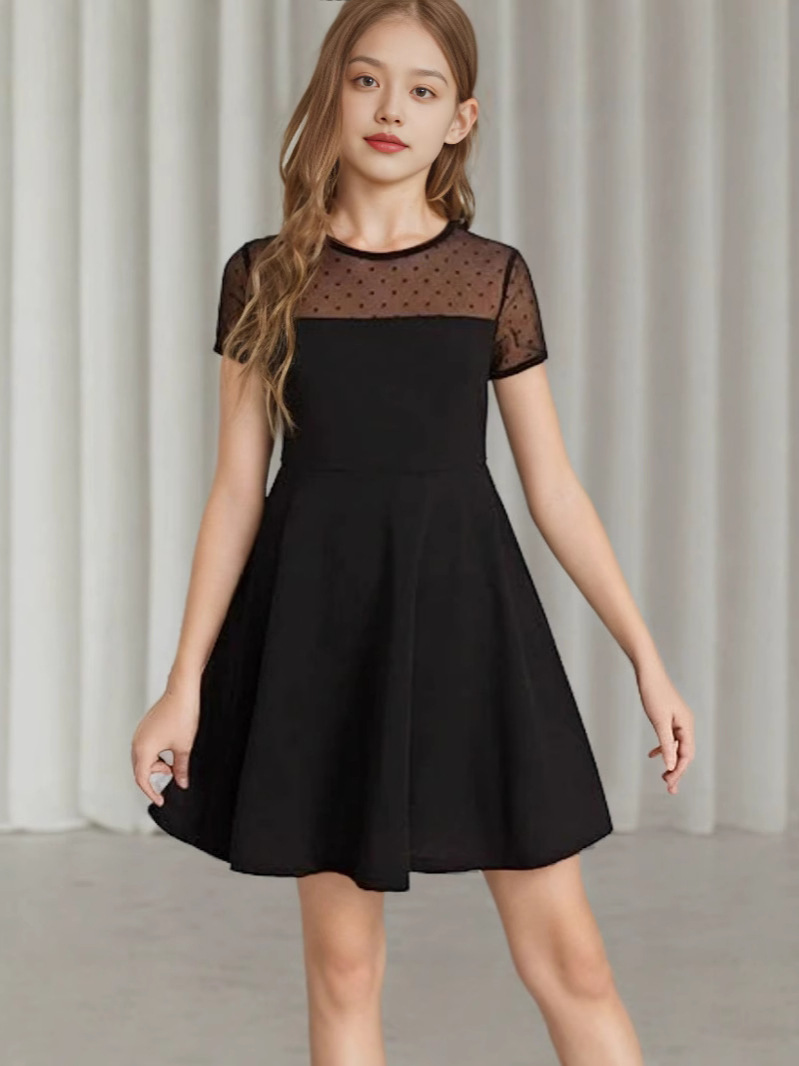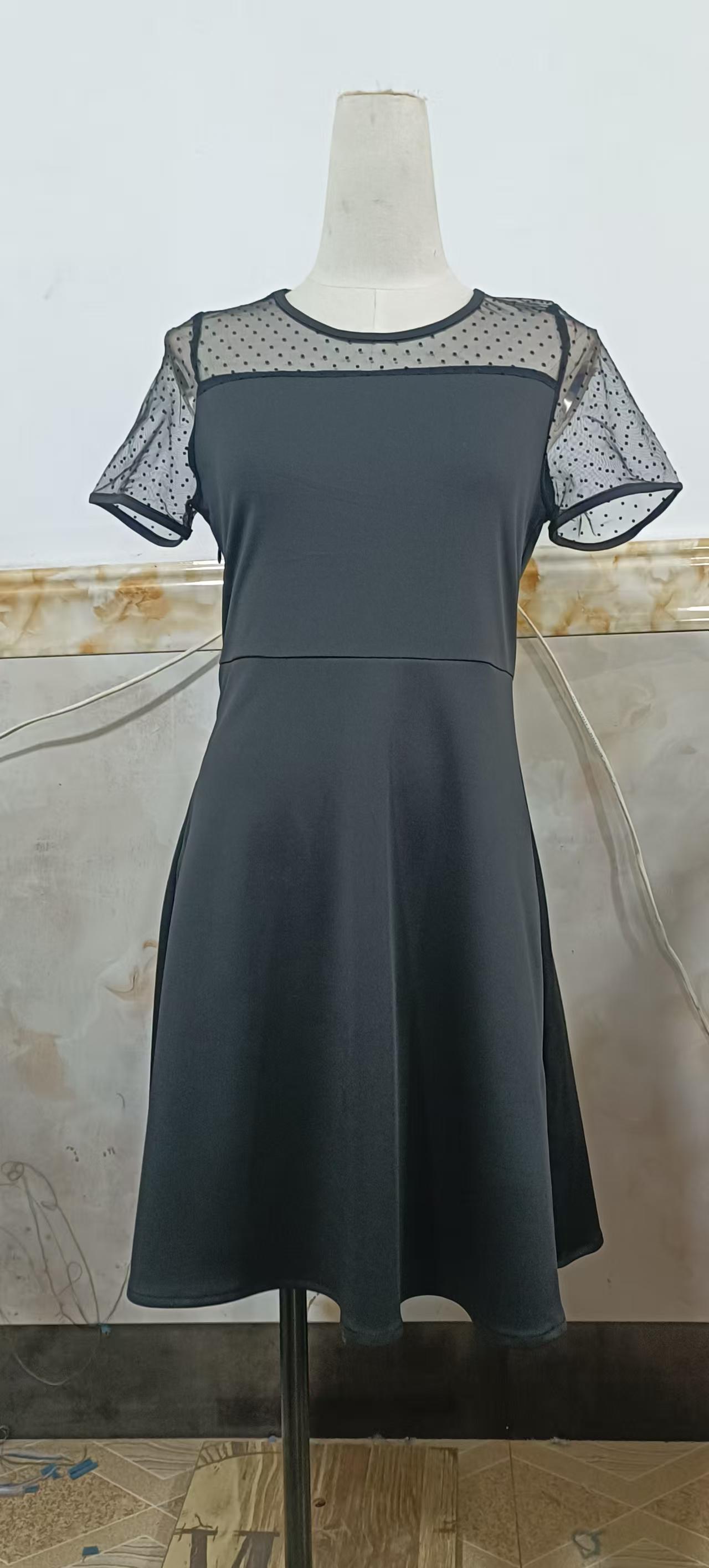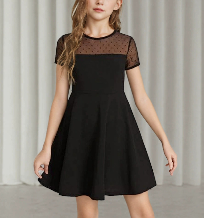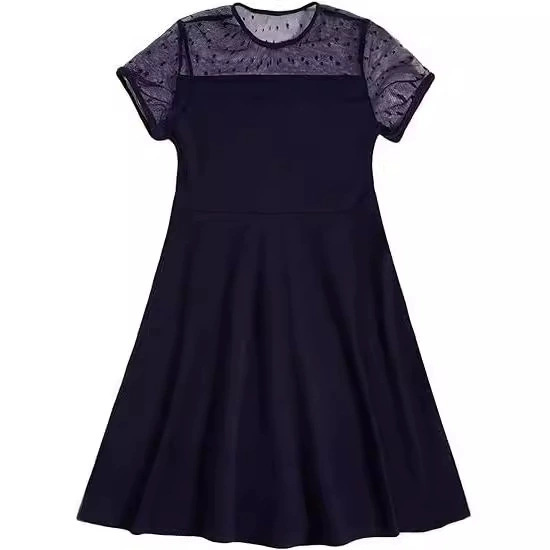 귀여운 여름 짧은 매일 착용 원피스 바느질 대외 무역 소녀 원피스 원피스 단색 메쉬