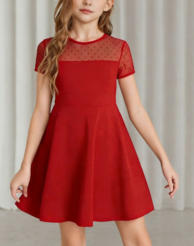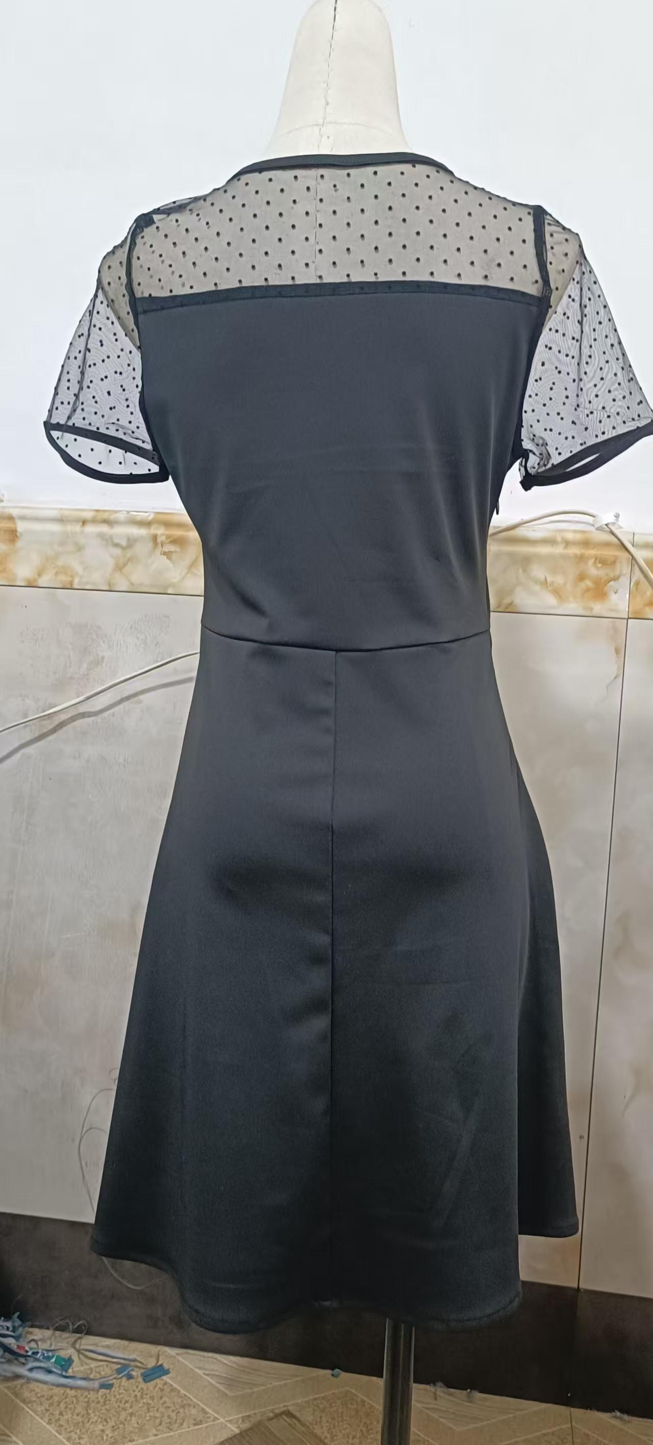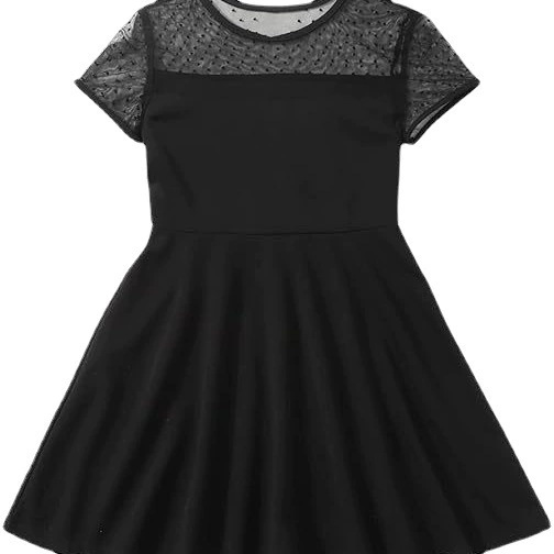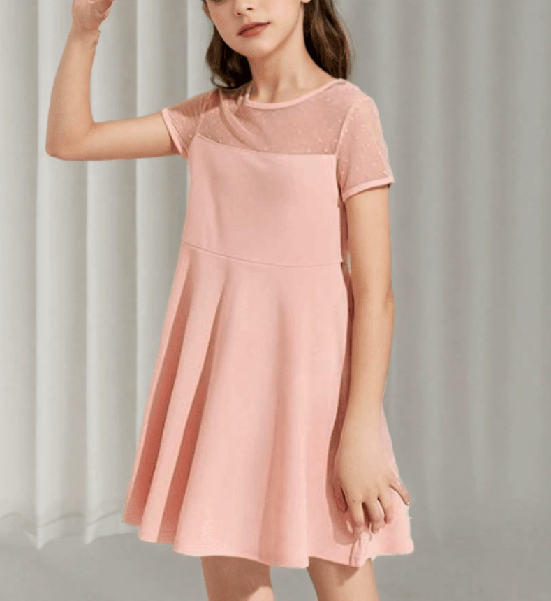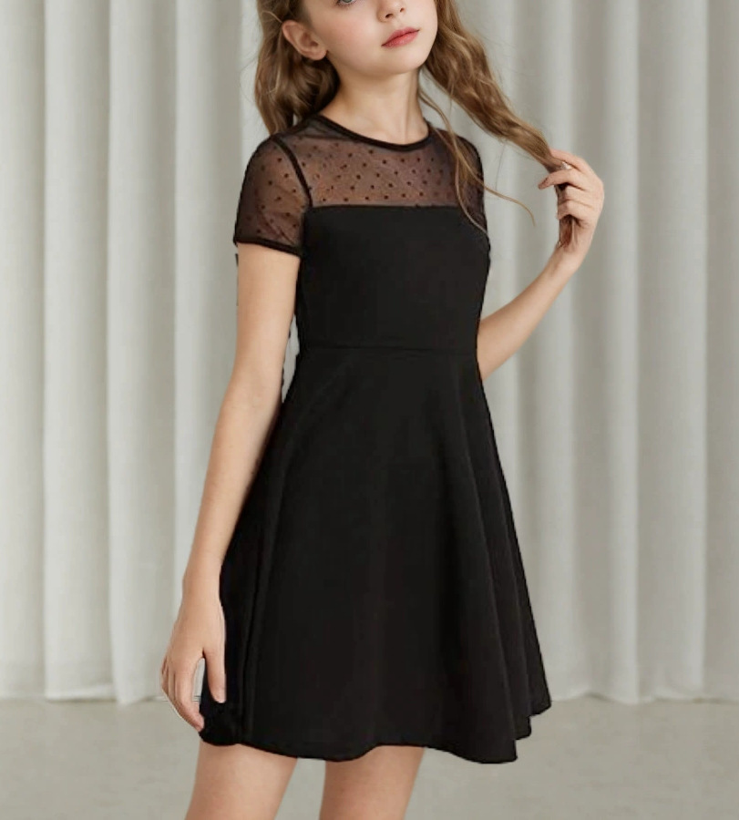 귀여운 여름 짧은 매일 착용 원피스 바느질 대외 무역 소녀 원피스 원피스 단색 메쉬