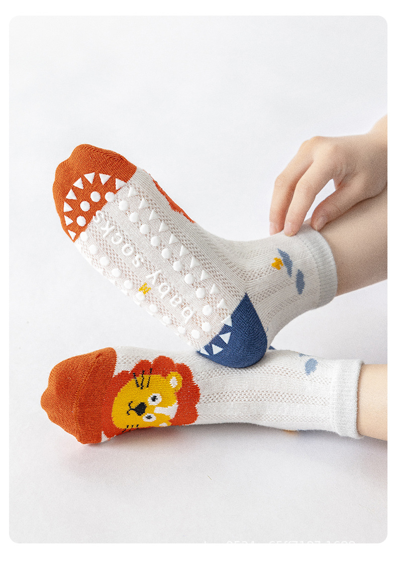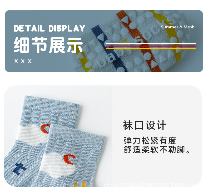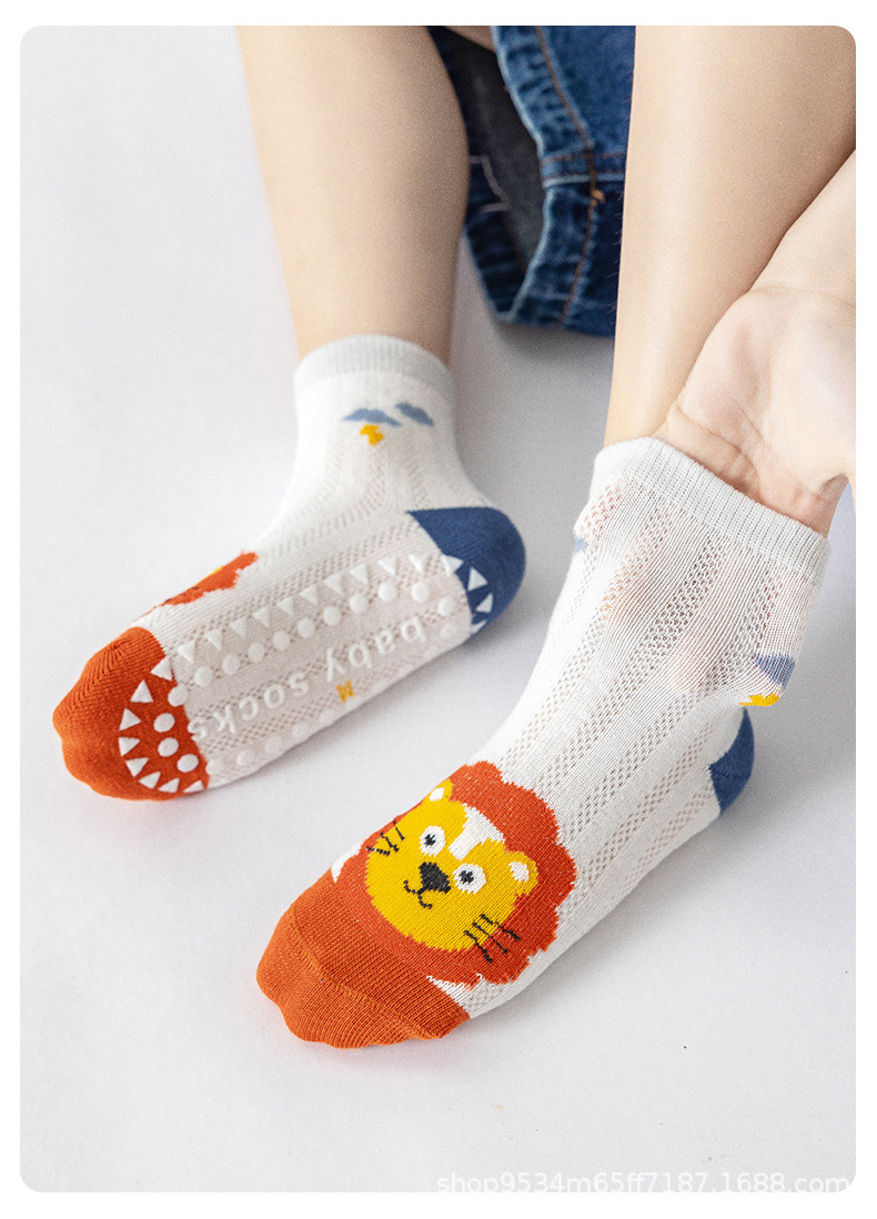 어린이 양말 봄과 여름 얇은 바닥 양말 메쉬 통기성 면 양말 소년 실내 미끄럼 방지 트램폴린 미드 튜브 양말스토어 가기
