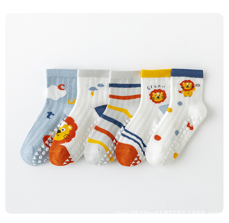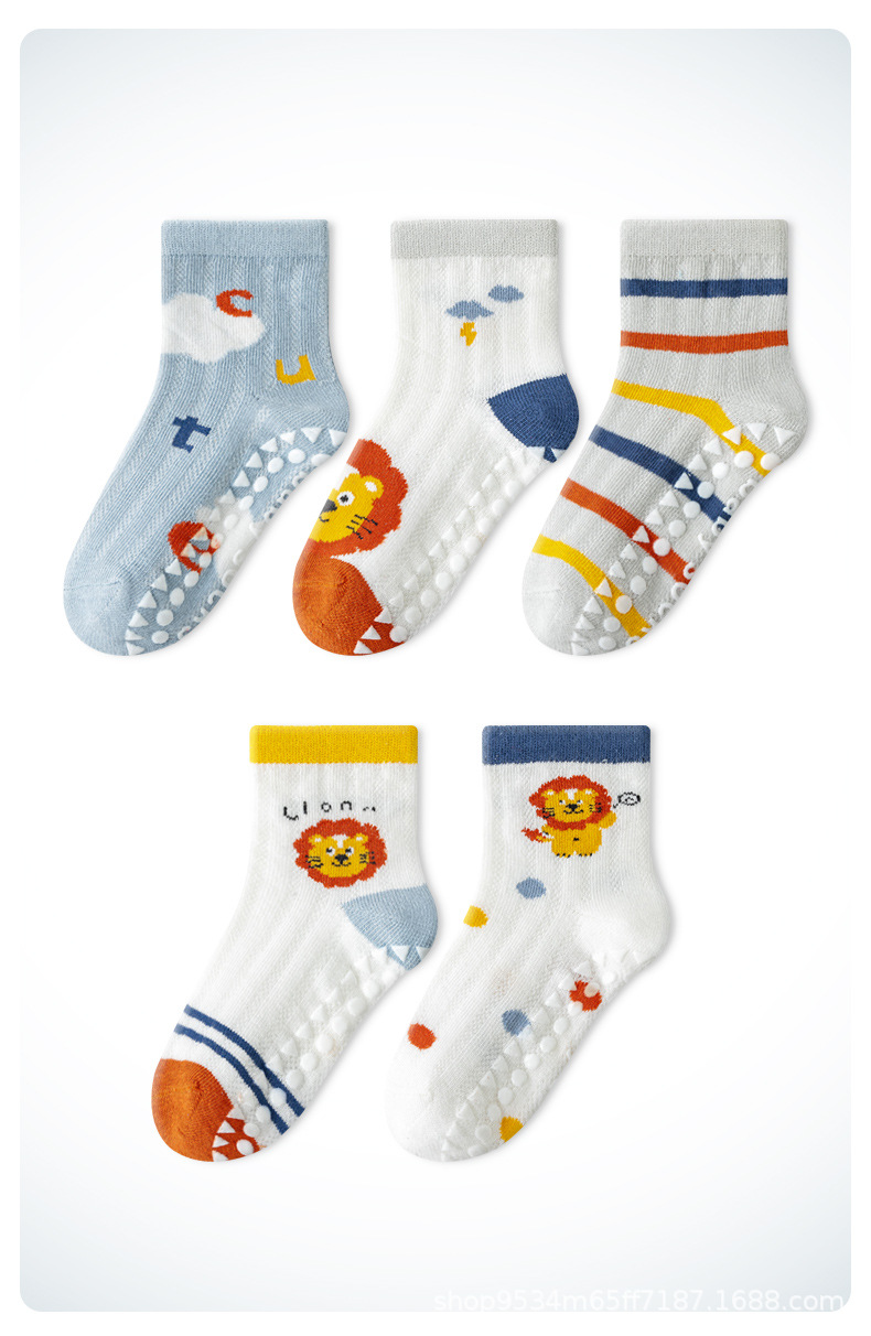 어린이 양말 봄과 여름 얇은 바닥 양말 메쉬 통기성 면 양말 소년 실내 미끄럼 방지 트램폴린 미드 튜브 양말