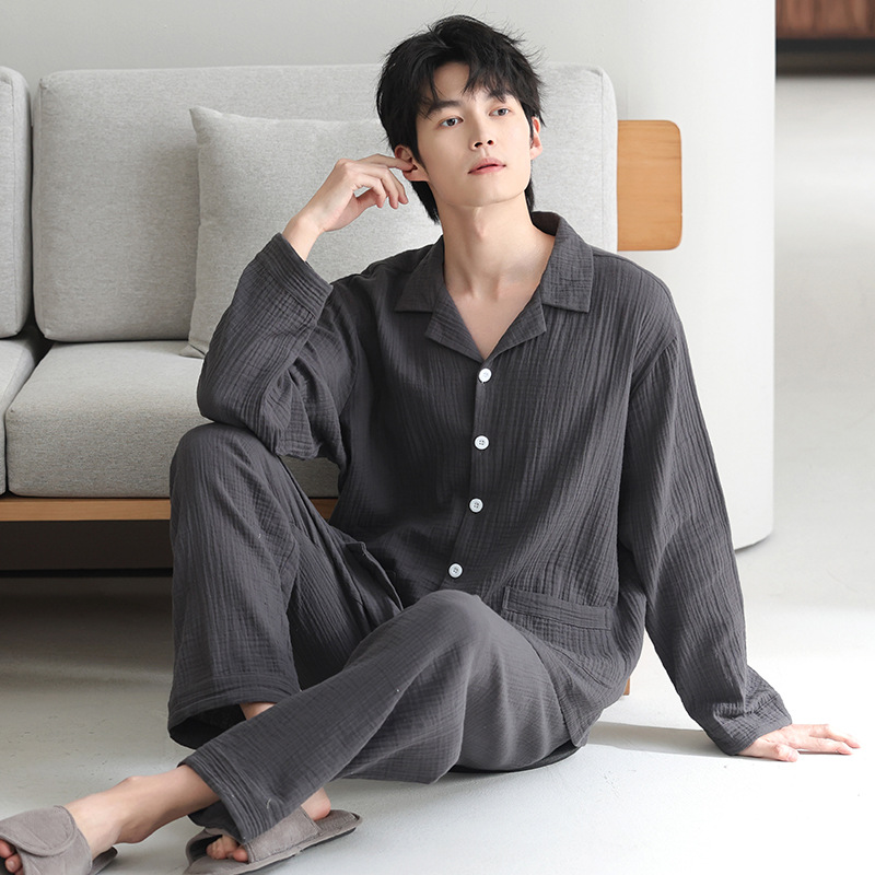 순면 여성의 봄과 가을 단색 카디건 플러스 사이즈 긴 소매 바지 남성 재능 폭발 커플 홈 의류 세트
