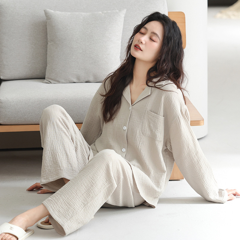 순면 여성의 봄과 가을 단색 카디건 플러스 사이즈 긴 소매 바지 남성 재능 폭발 커플 홈 의류 세트스토어 가기