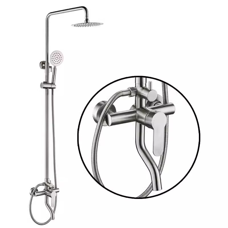 국경 간 스테인레스 스틸 샤워 세트 가정용 뜨거운 차가운 수도꼭지 샤워 욕실 비 부스터 샤워 헤드스토어 가기
