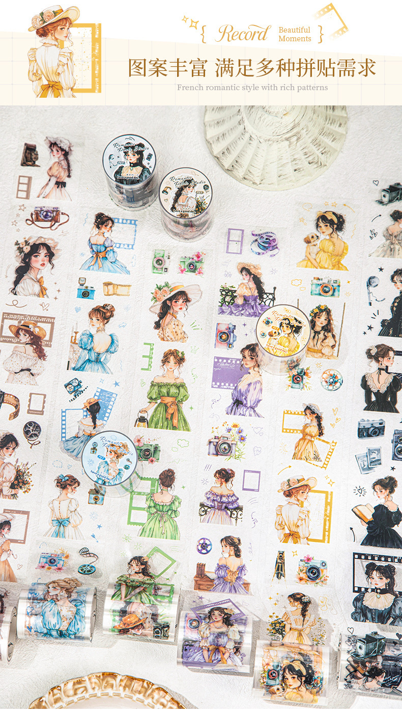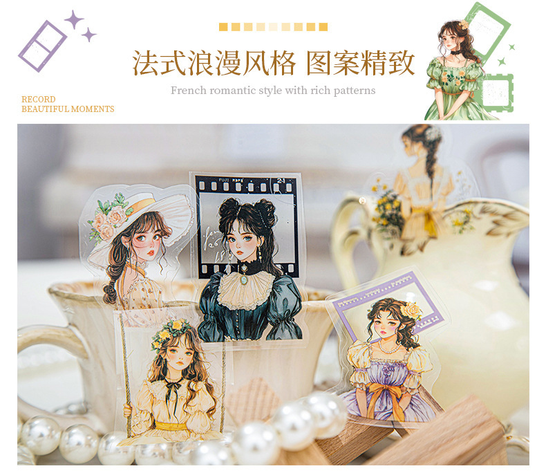 아름다운 날 애완 동물 다이 컷 테이프 로맨틱 사진 갤러리 소녀 캐릭터 장식 스티커 방수 손 계정 스티커