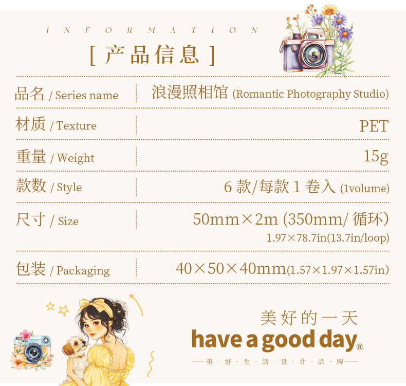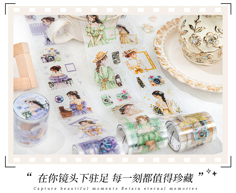 아름다운 날 애완 동물 다이 컷 테이프 로맨틱 사진 갤러리 소녀 캐릭터 장식 스티커 방수 손 계정 스티커스토어 가기