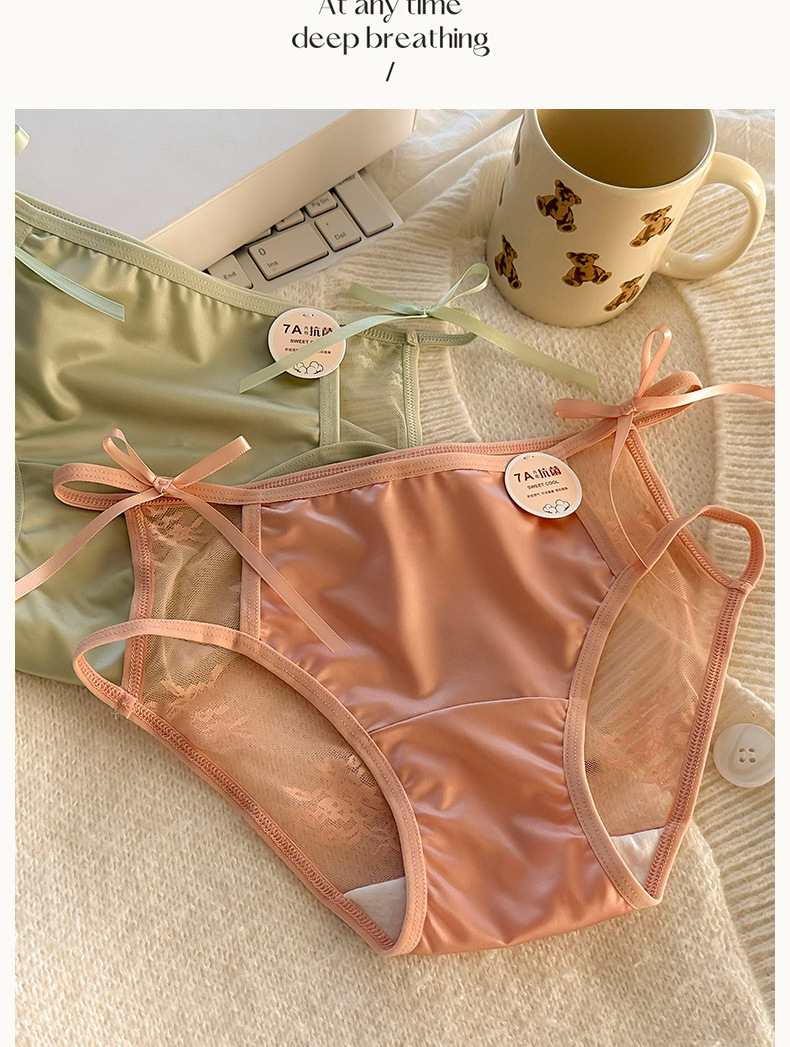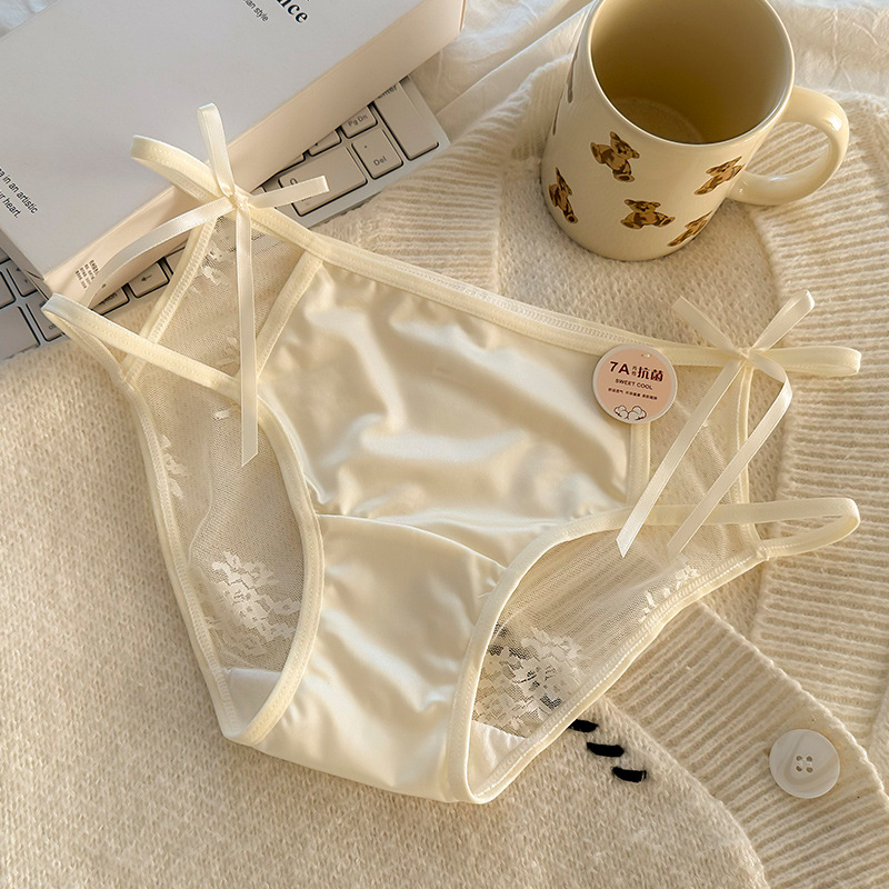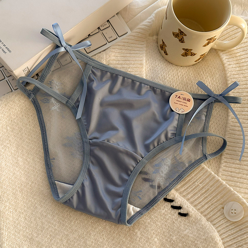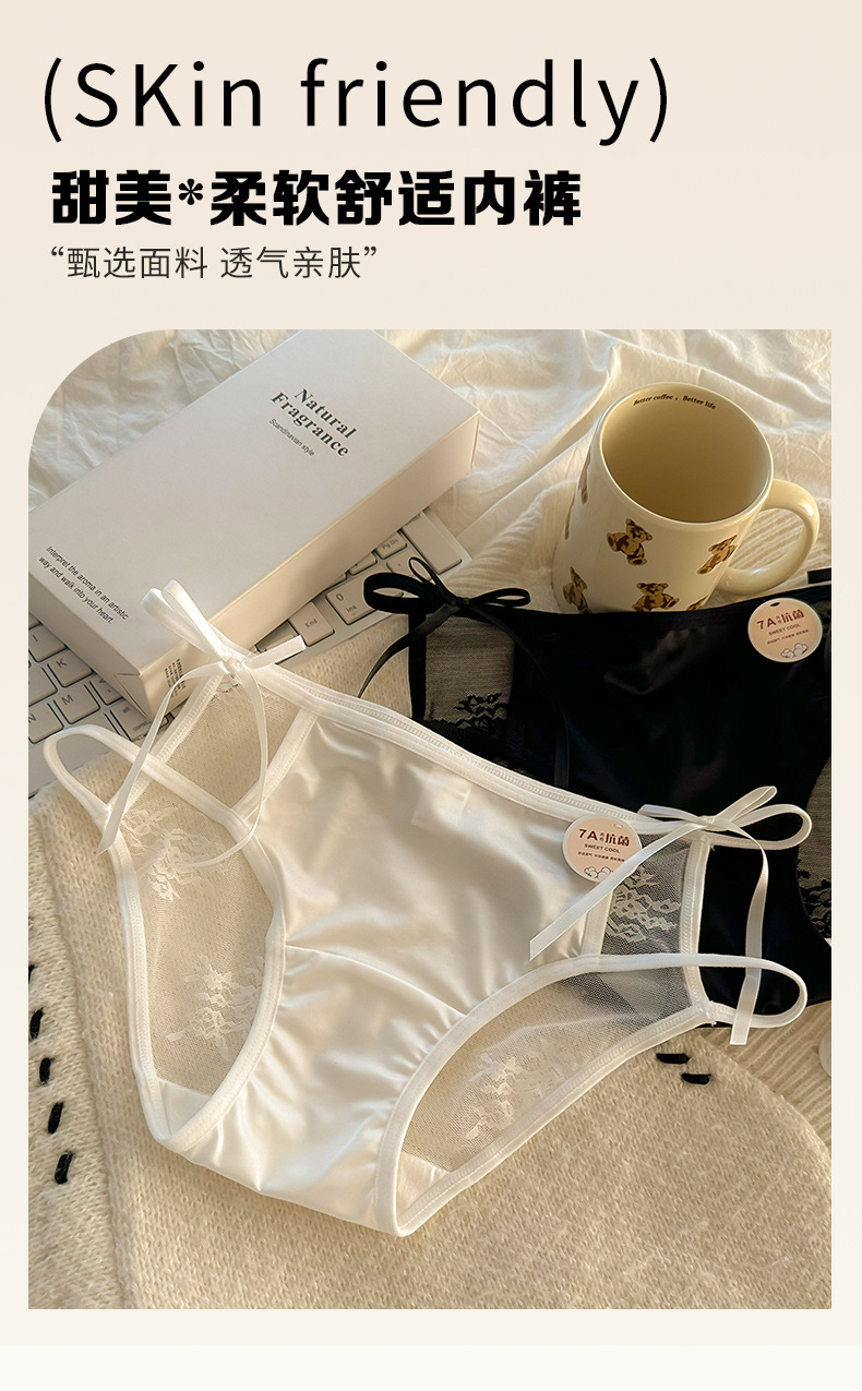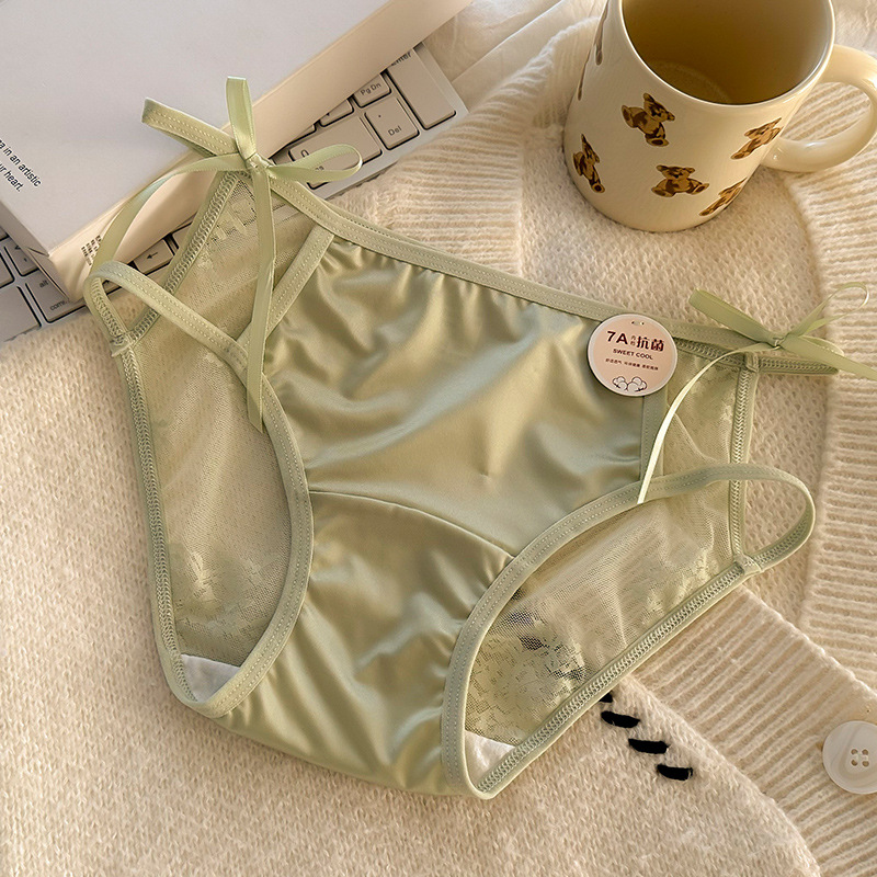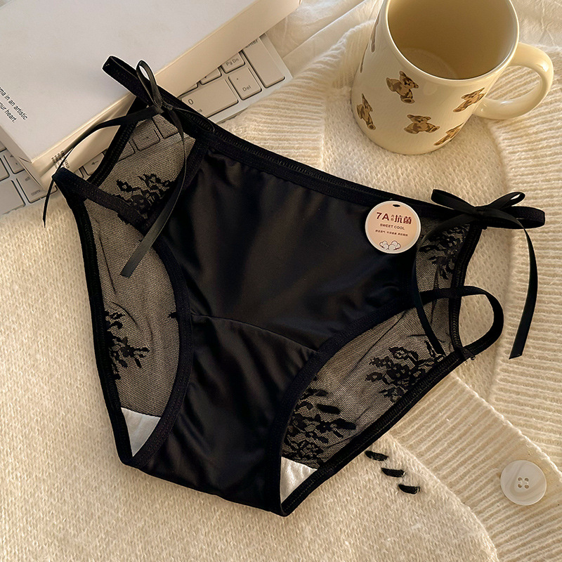 프랑스 스타일 섹시한 레이스 속옷 여성의 7A 박테리아 긴 순수 코튼 크로트 순수한 욕망 테이프 빈 투명 메쉬 브리프