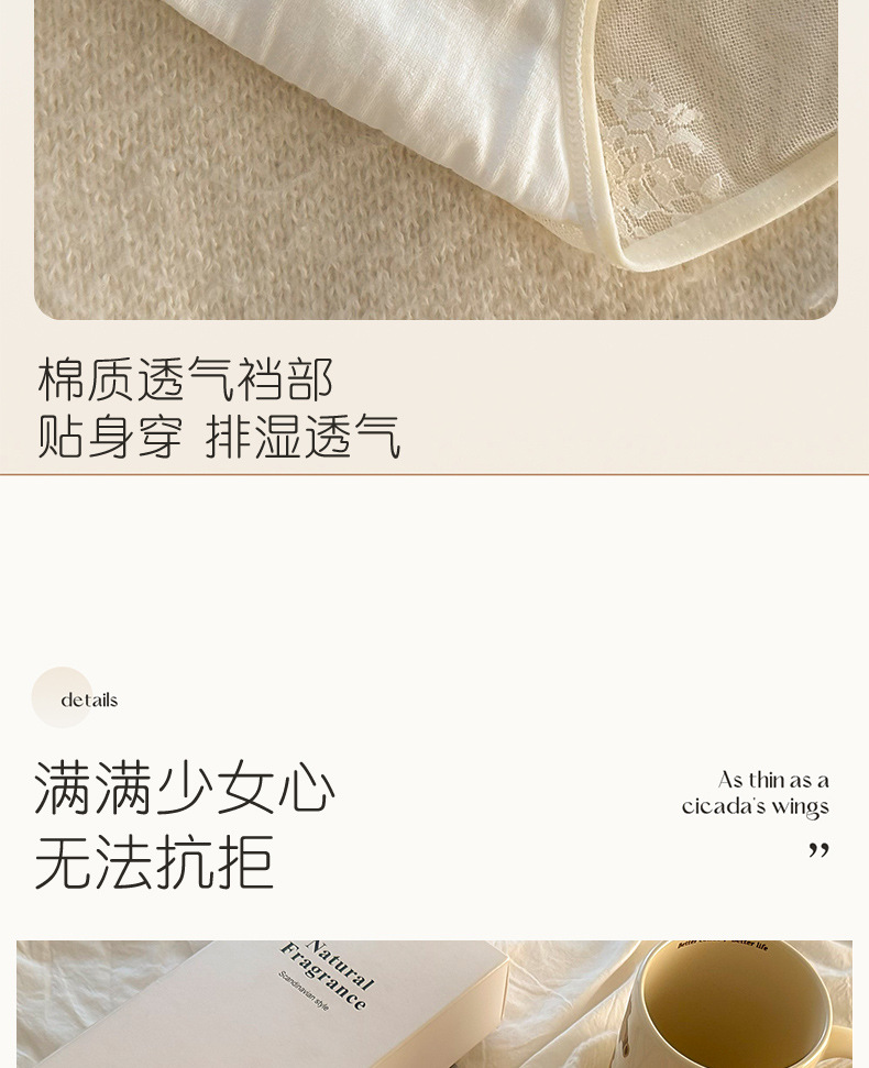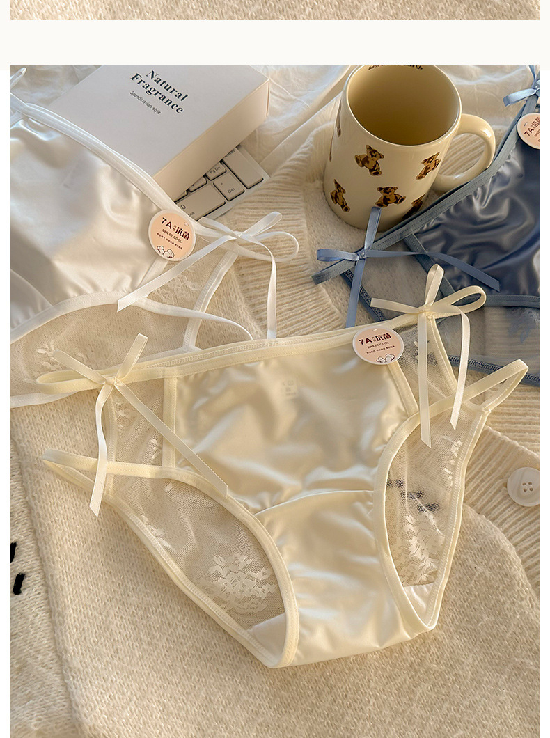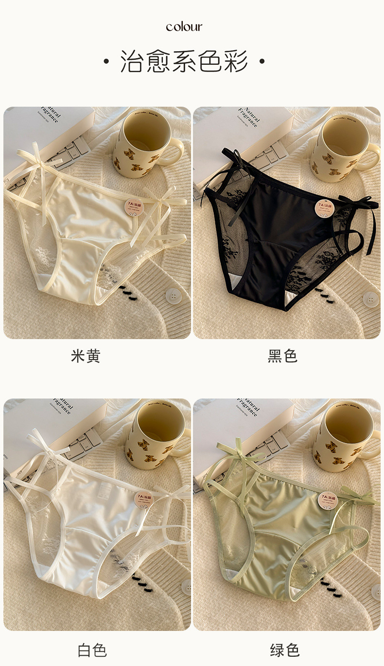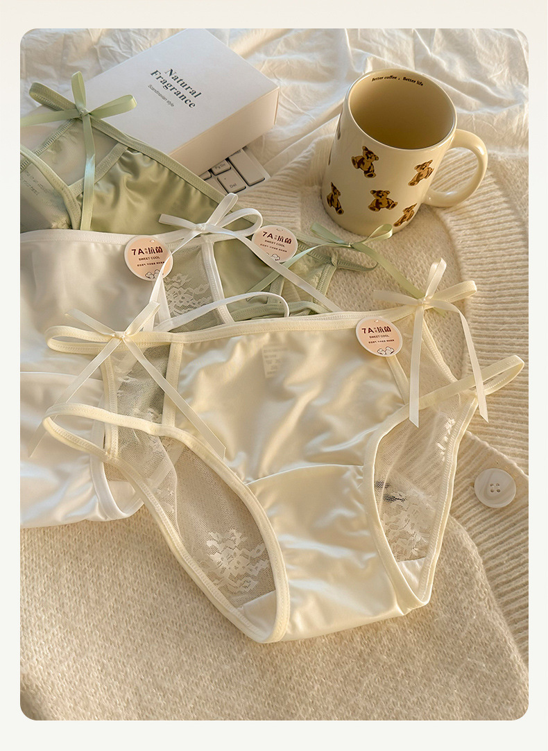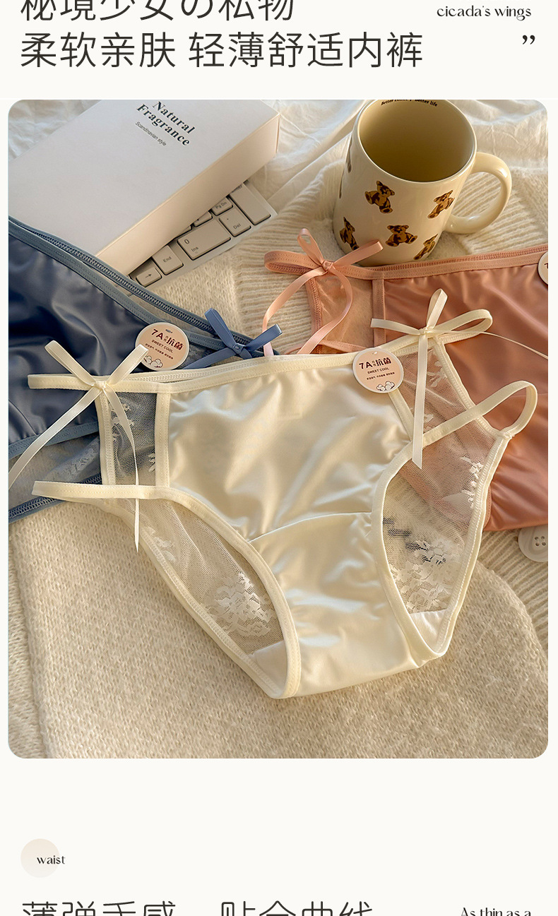 프랑스 스타일 섹시한 레이스 속옷 여성의 7A 박테리아 긴 순수 코튼 크로트 순수한 욕망 테이프 빈 투명 메쉬 브리프