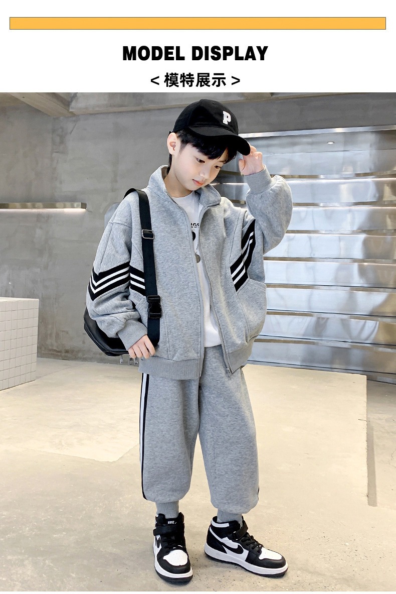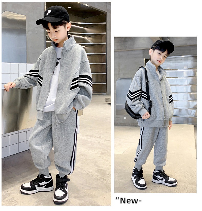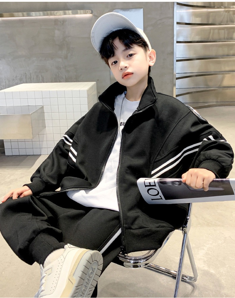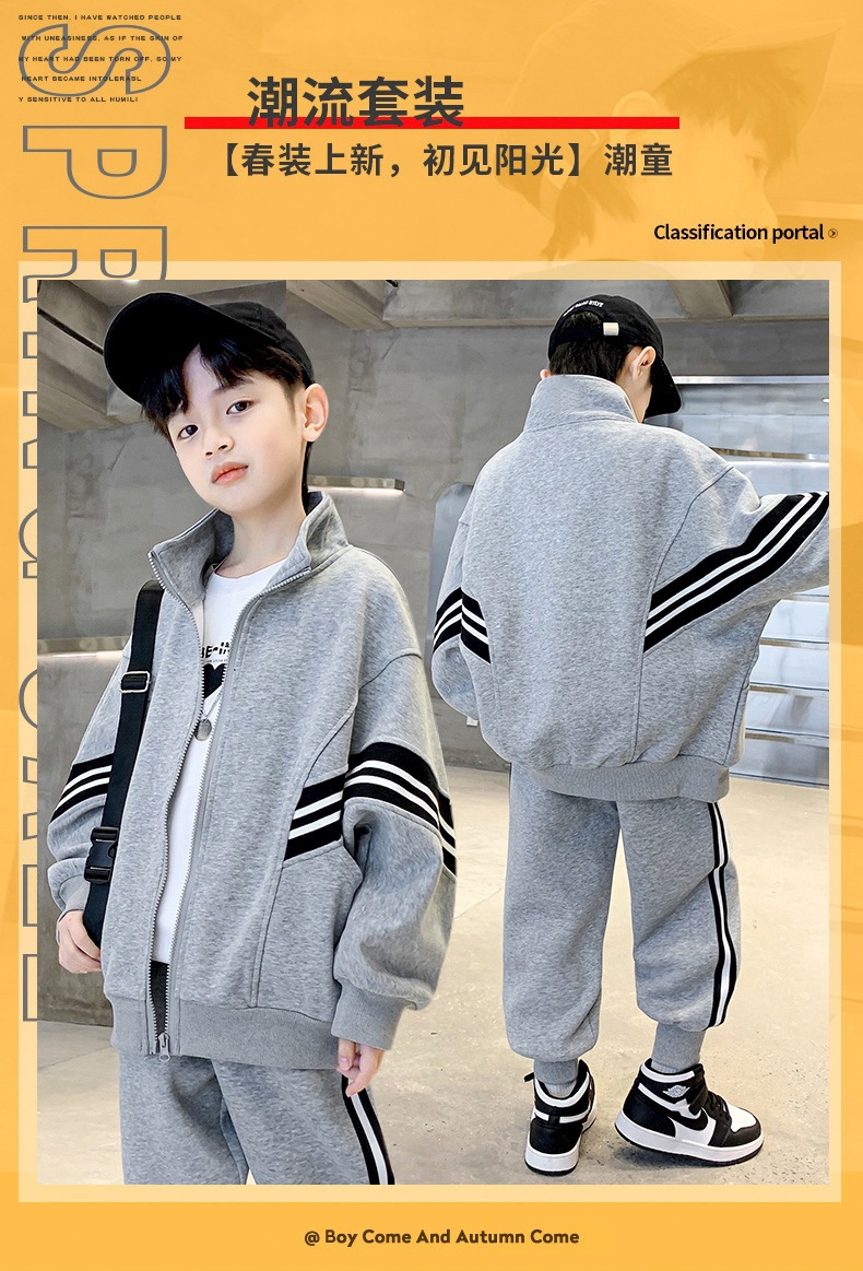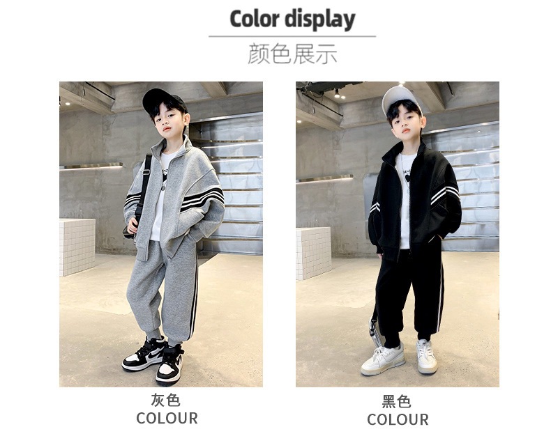 2025 봄 새로운 어린이 지퍼 스탠드 칼라 스웨터 세트 중소 소년 캔디 컬러 스포츠 레저 투피스 세트스토어 가기