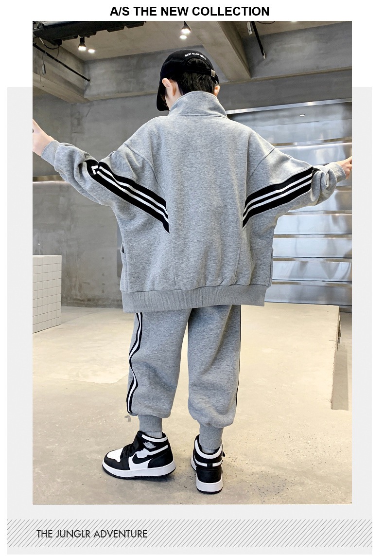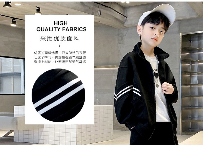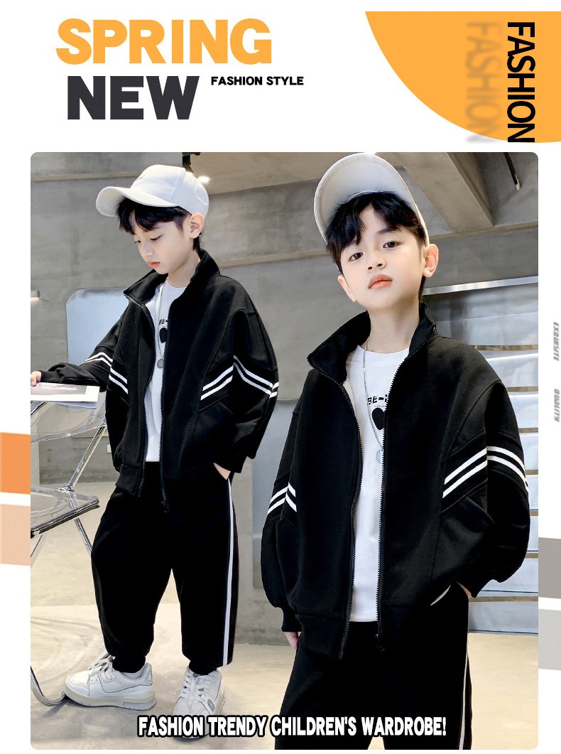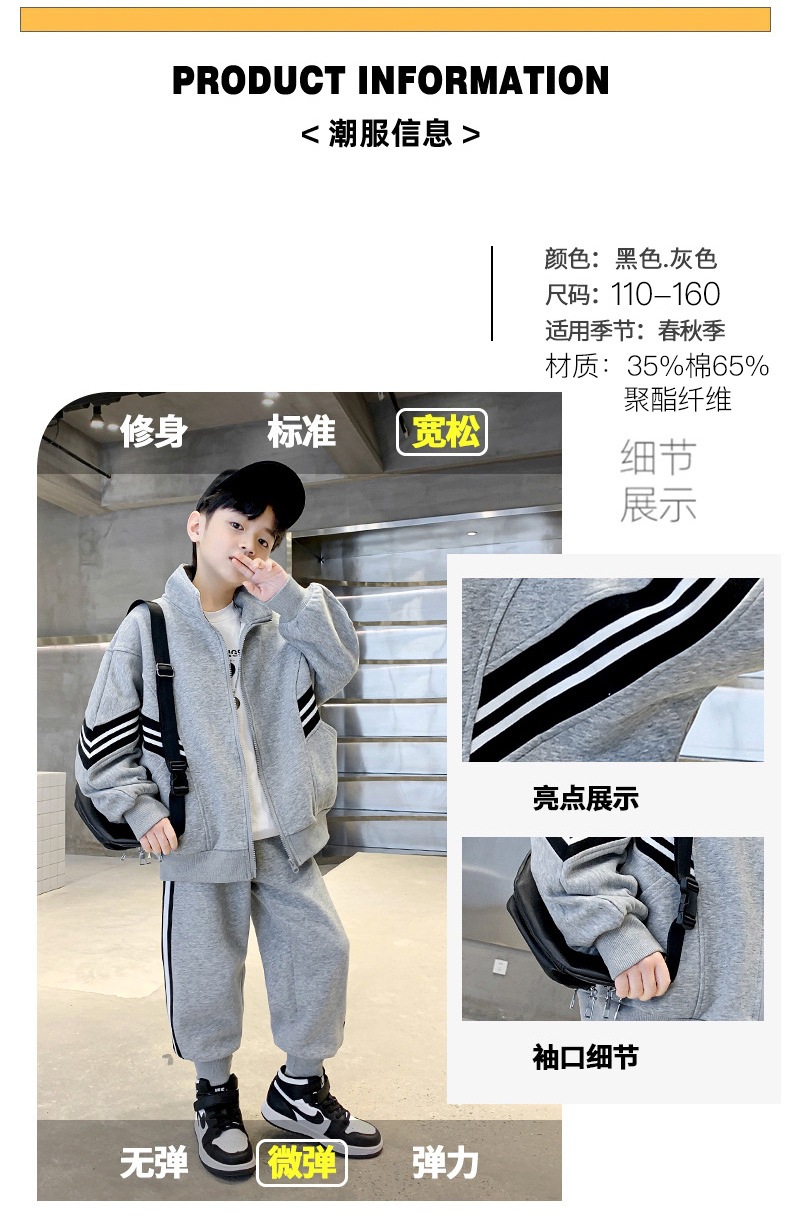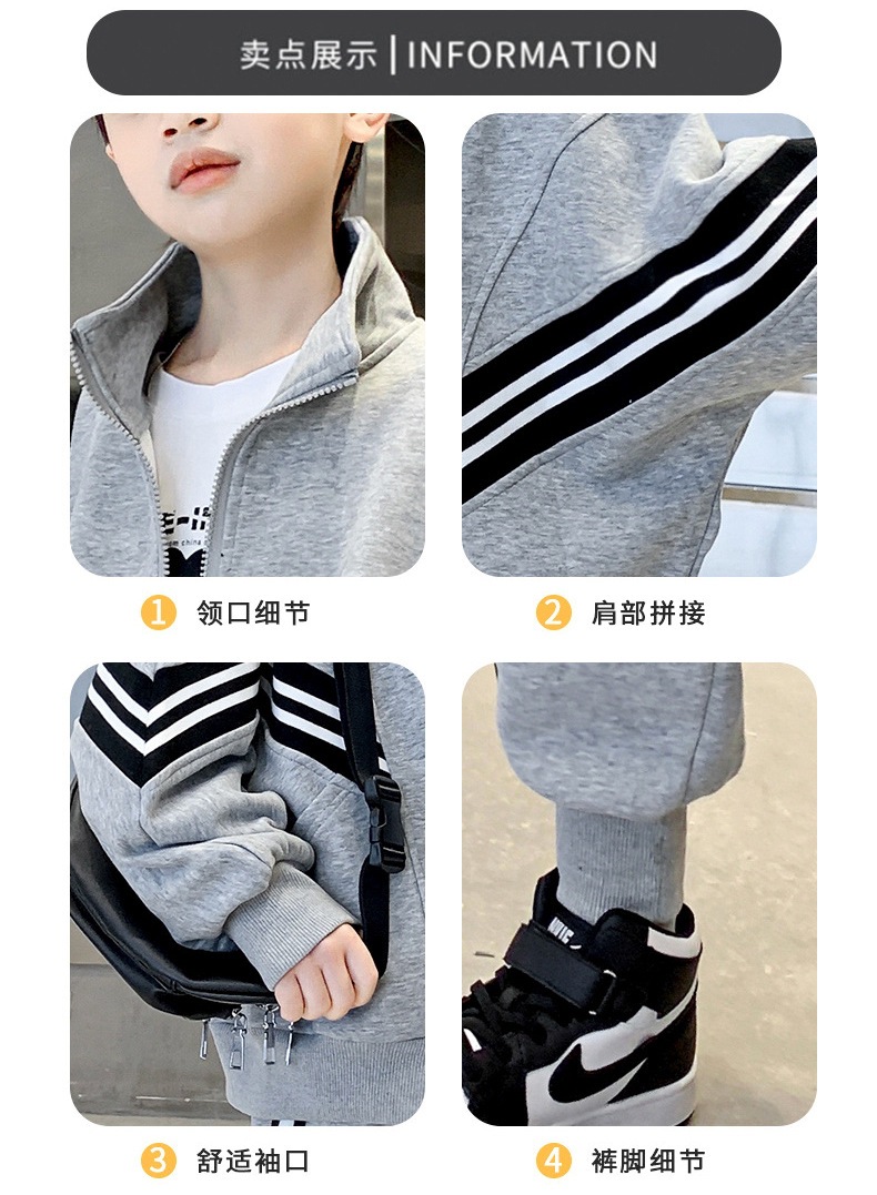 2025 봄 새로운 어린이 지퍼 스탠드 칼라 스웨터 세트 중소 소년 캔디 컬러 스포츠 레저 투피스 세트스토어 가기