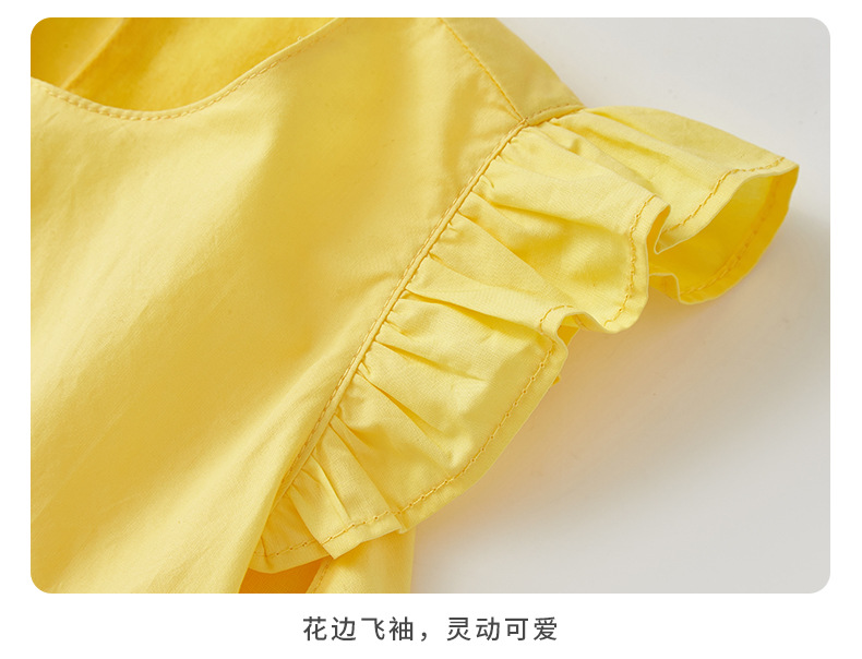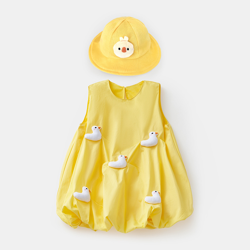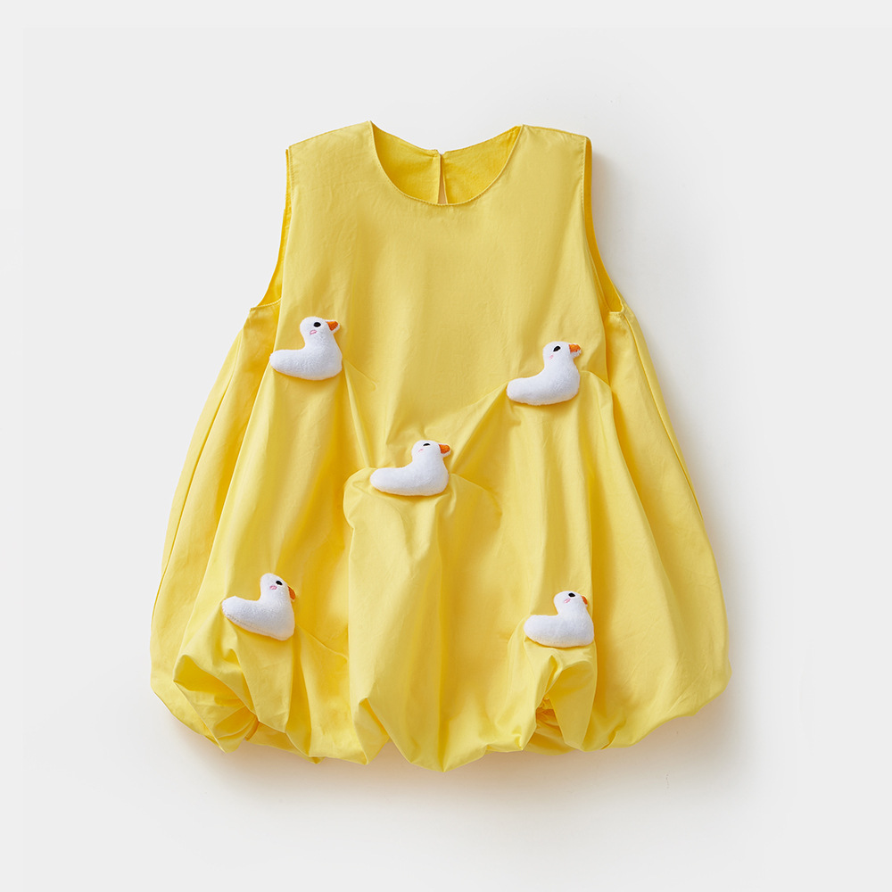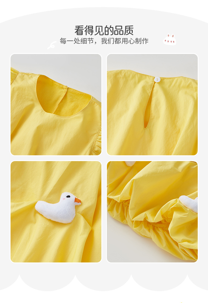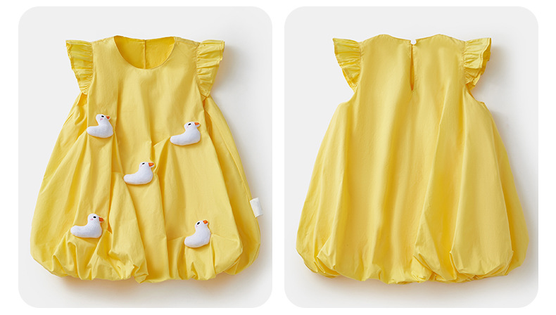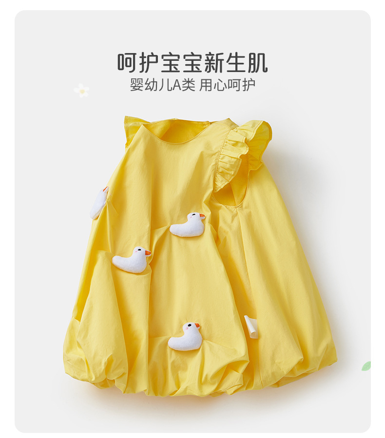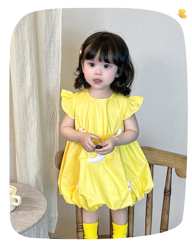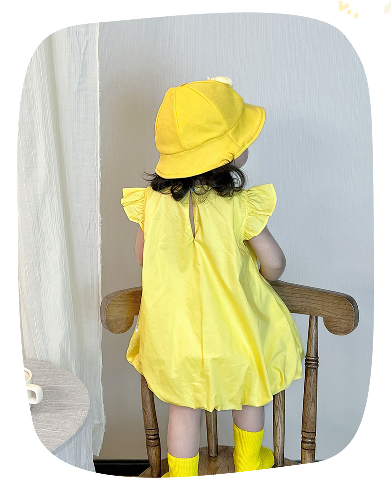 2025 아기 소녀 여름 작은 노란 오리 바지 치마 아기 한국 스타일 원피스 3692 어린이 비행 슬리브 서양식 치마스토어 가기