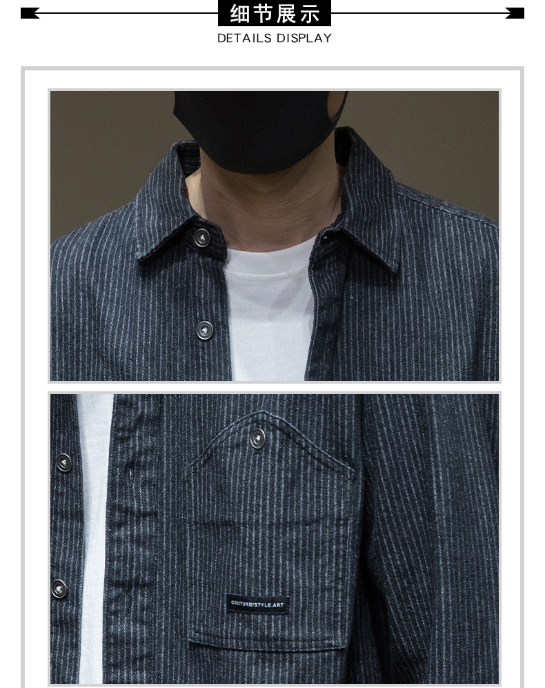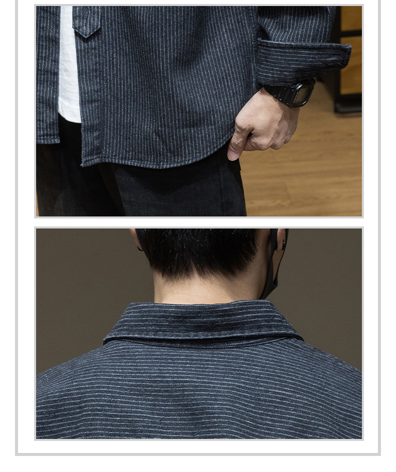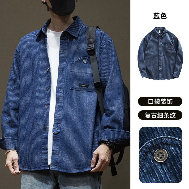 일본 줄무늬 데님 긴 소매 셔츠 남자의 봄과 가을 새로운 느슨한 플러스 사이즈 레트로 셔츠 코트 고급 감각스토어 가기