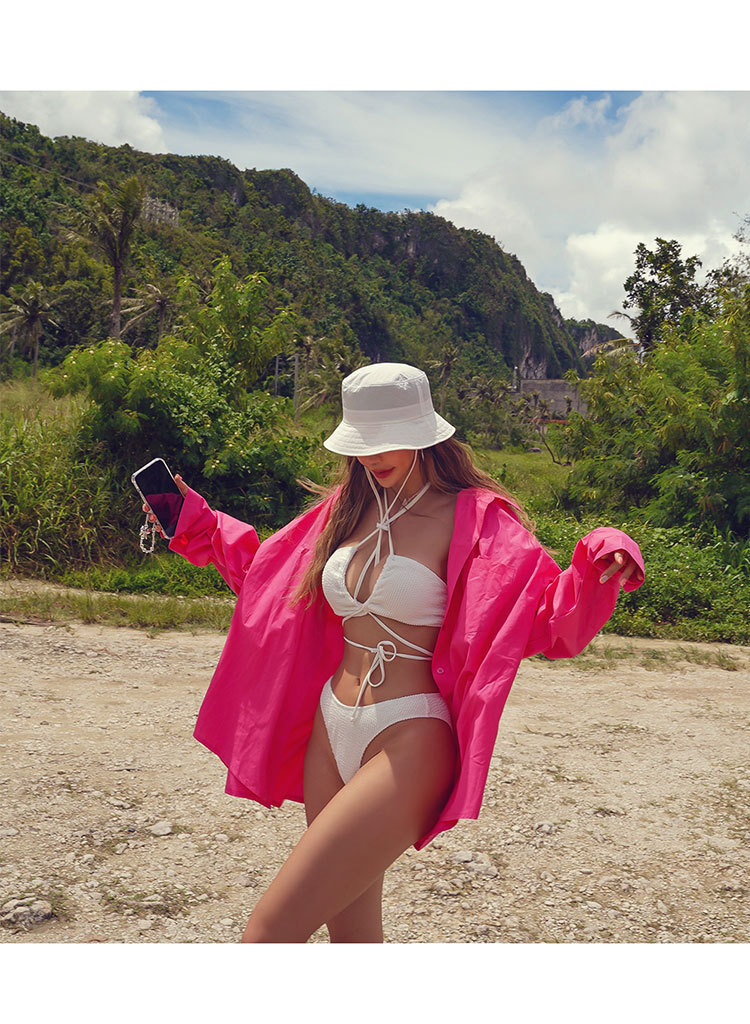 화이트 섹시 백리스 스트랩 타이트 업 유럽과 미국 비키니 온천 휴가 하이 엔드 패션 스플릿 수영복스토어 가기