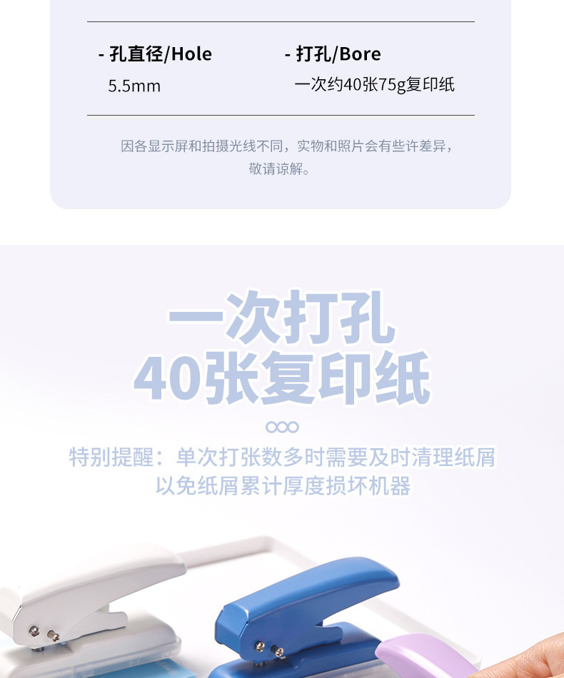 우수한 펀칭 기계 단일 구멍 둥근 구멍 수동 바인딩 A4 종이 문서 일회성 펀칭 40 구멍 펀처를 얻을 수 있습니다스토어 가기