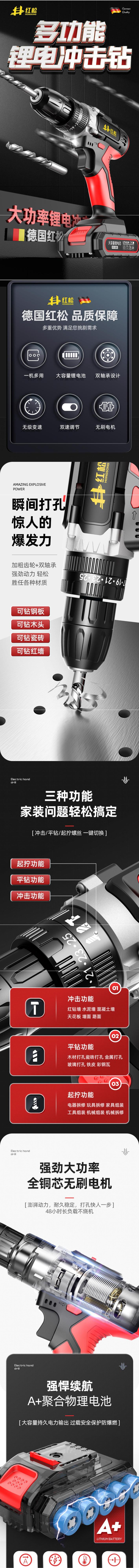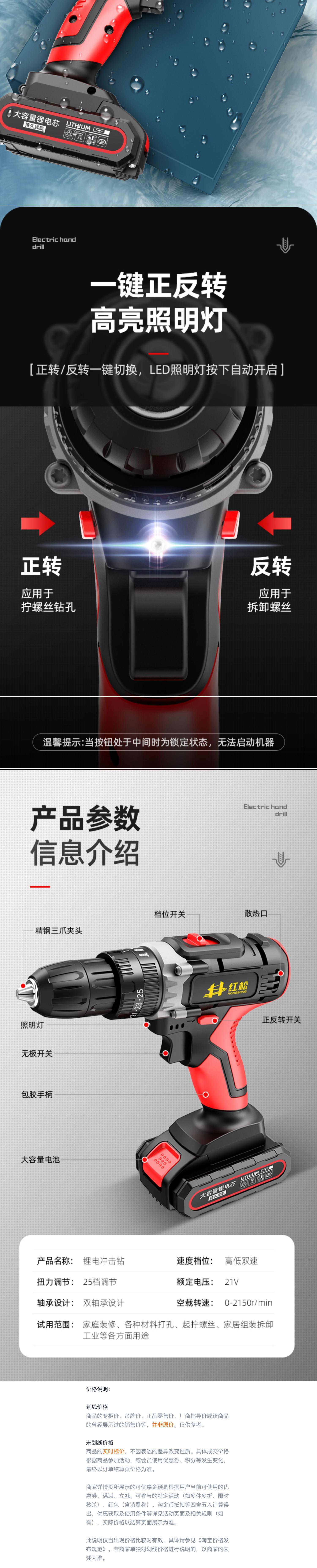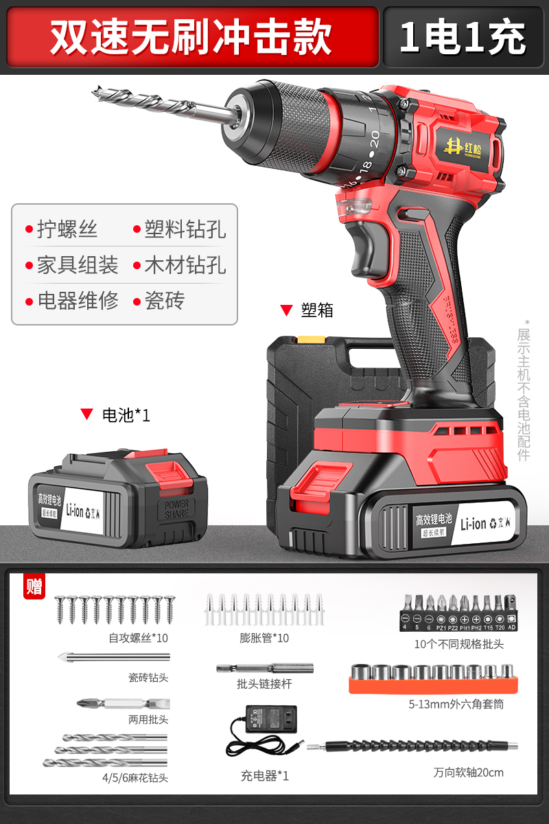 브러시리스 핸드 전기 드릴 충격 드릴 턴 가정용 핸드 건 드릴 리튬 전기 드릴 도구 다기능 충전식 전기 스크루 드라이버