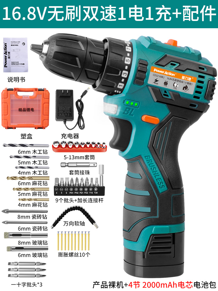 • 16.8V 소형 강철 대포 배터리 1개 충전 1개 + 플라스틱 상자 액세서리