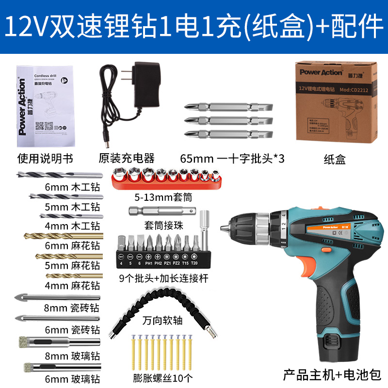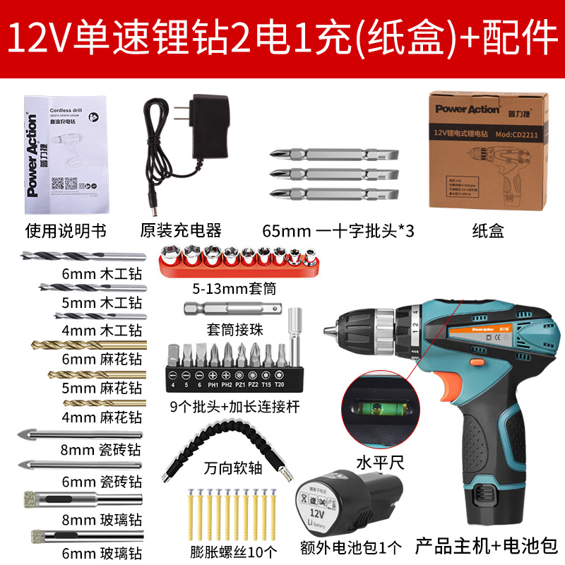 Pulijie 12V 리튬 전기 드릴 충전식 핸드 드릴 작은 핸드 건 드릴 전기 드릴 가정용 전기 스크루 드라이버 전기 터닝 도구