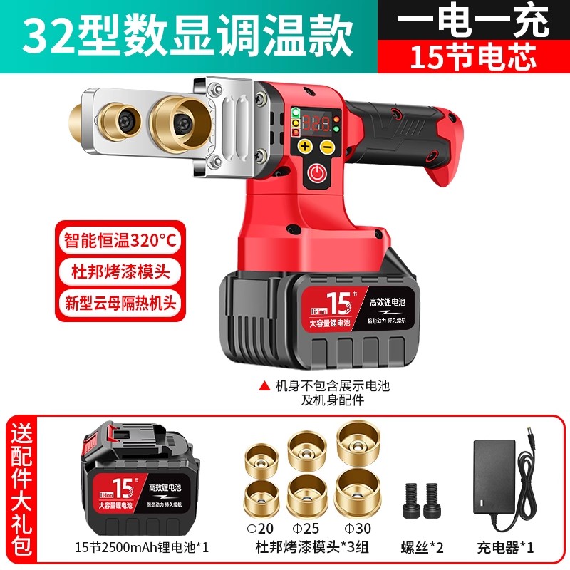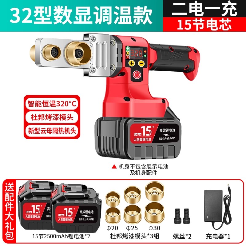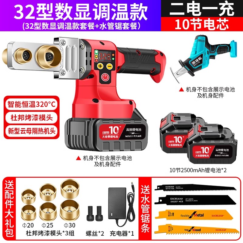 • 유형 32 디지털 디스플레이 온도 조절 모델 + 10셀 물 파이프 톱, 배터리 2개 및 충전기 1개