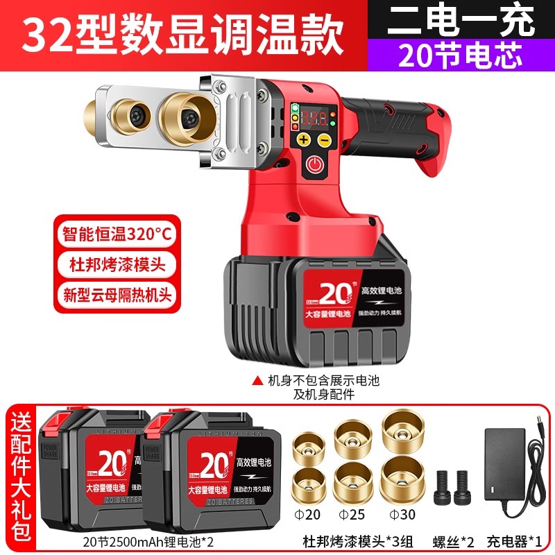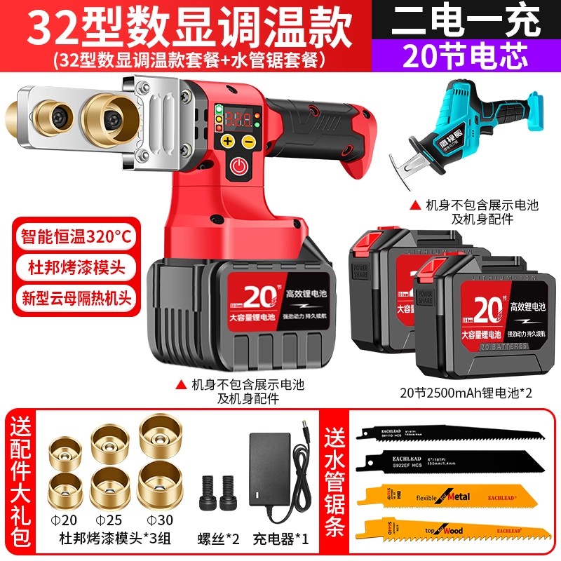 • 32형 디지털 디스플레이 온도 조절 모델, 배터리 20개 + 수도관 톱, 배터리 2개 및 충전기 1개