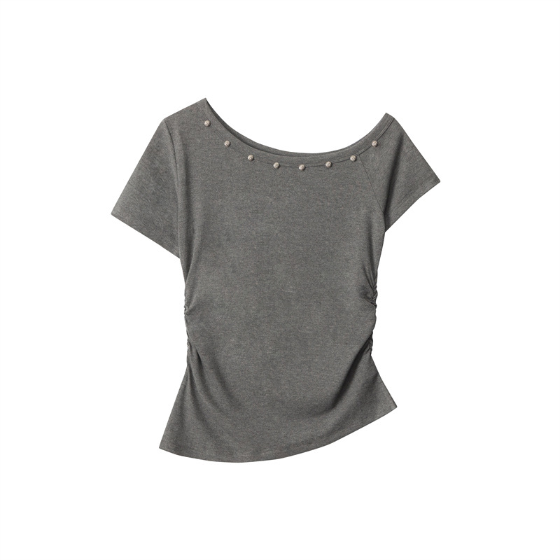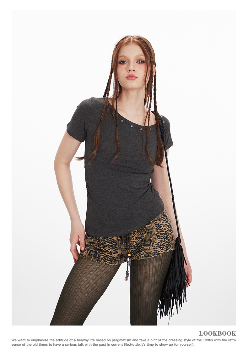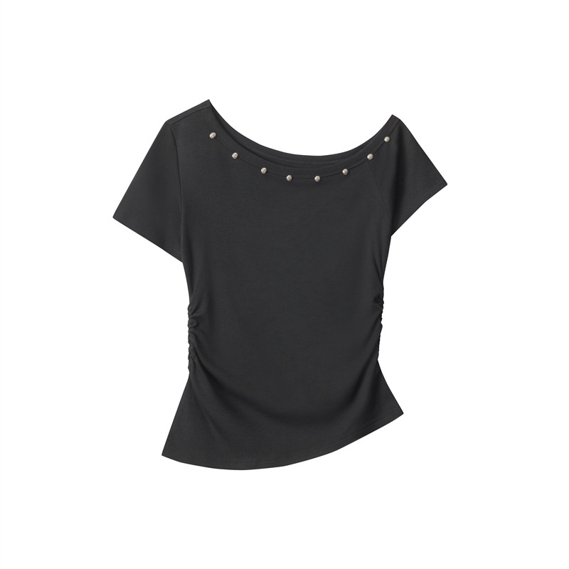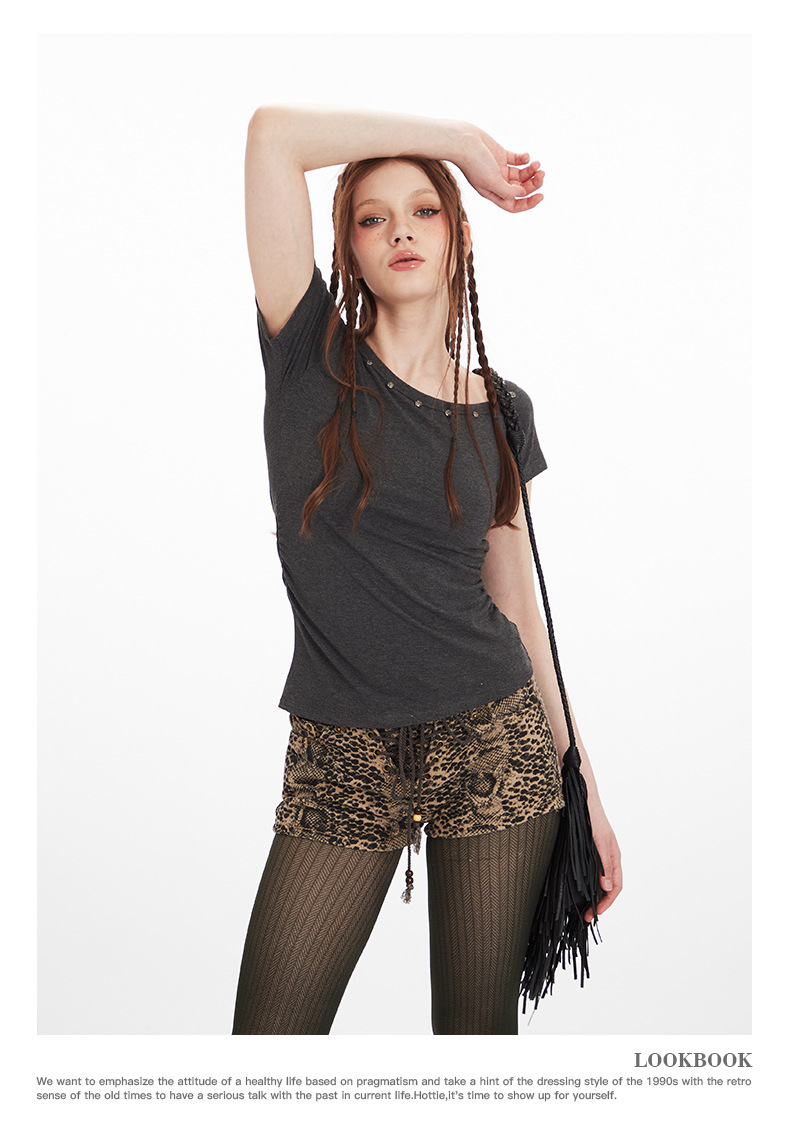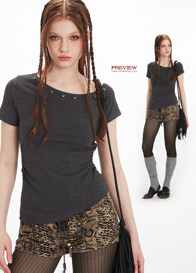 HeyHenry American Style Hot Girl 슬림 핏 반팔 티셔츠 여성용 2025 년 여름 어깨 노출 쇼트 웨이스트 탑