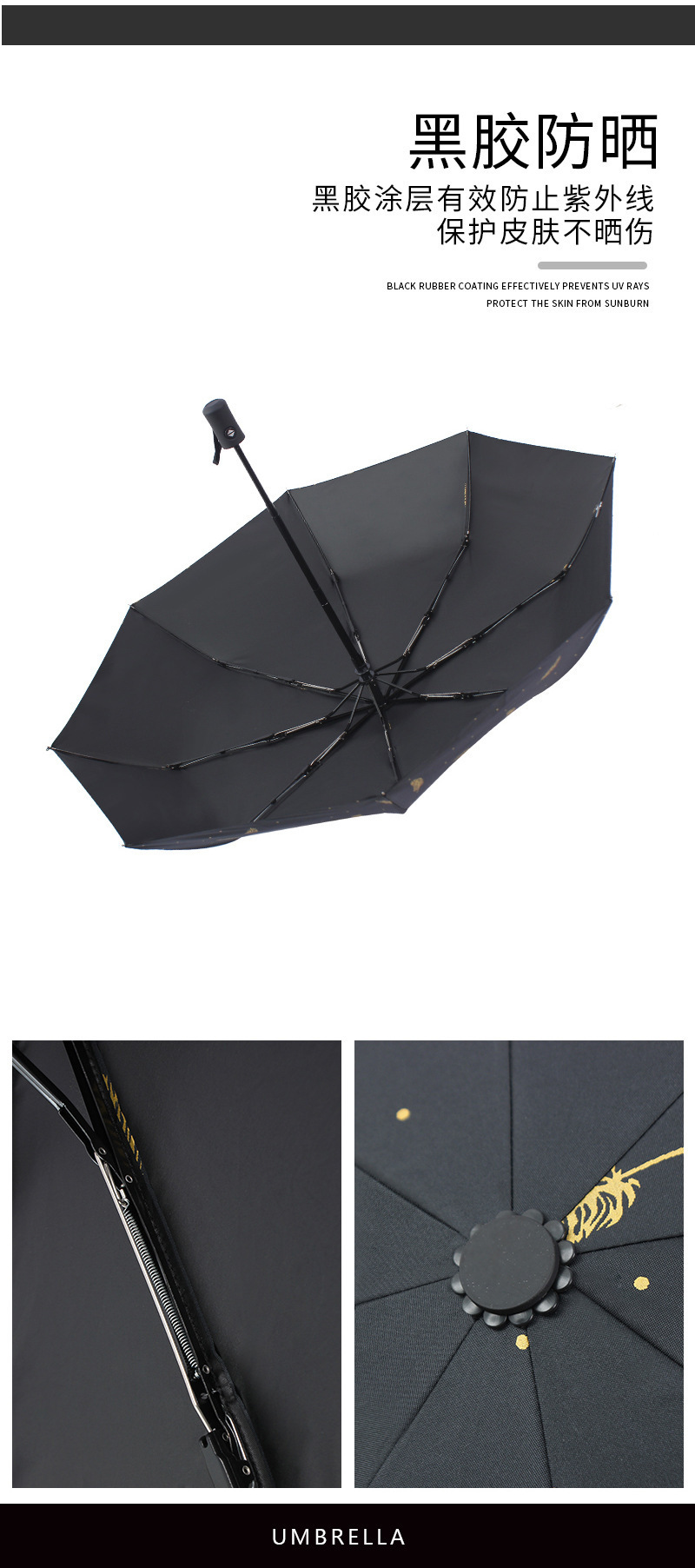 작고 깔끔한 금박 깃털 우산, 여성용 양산 겸용 우산, 자외선 차단 우산, 로고 인쇄 가능
