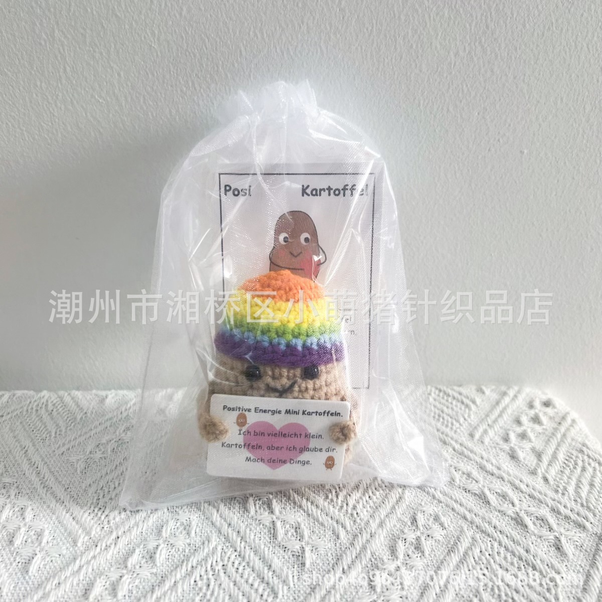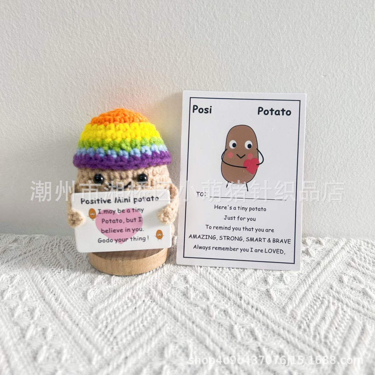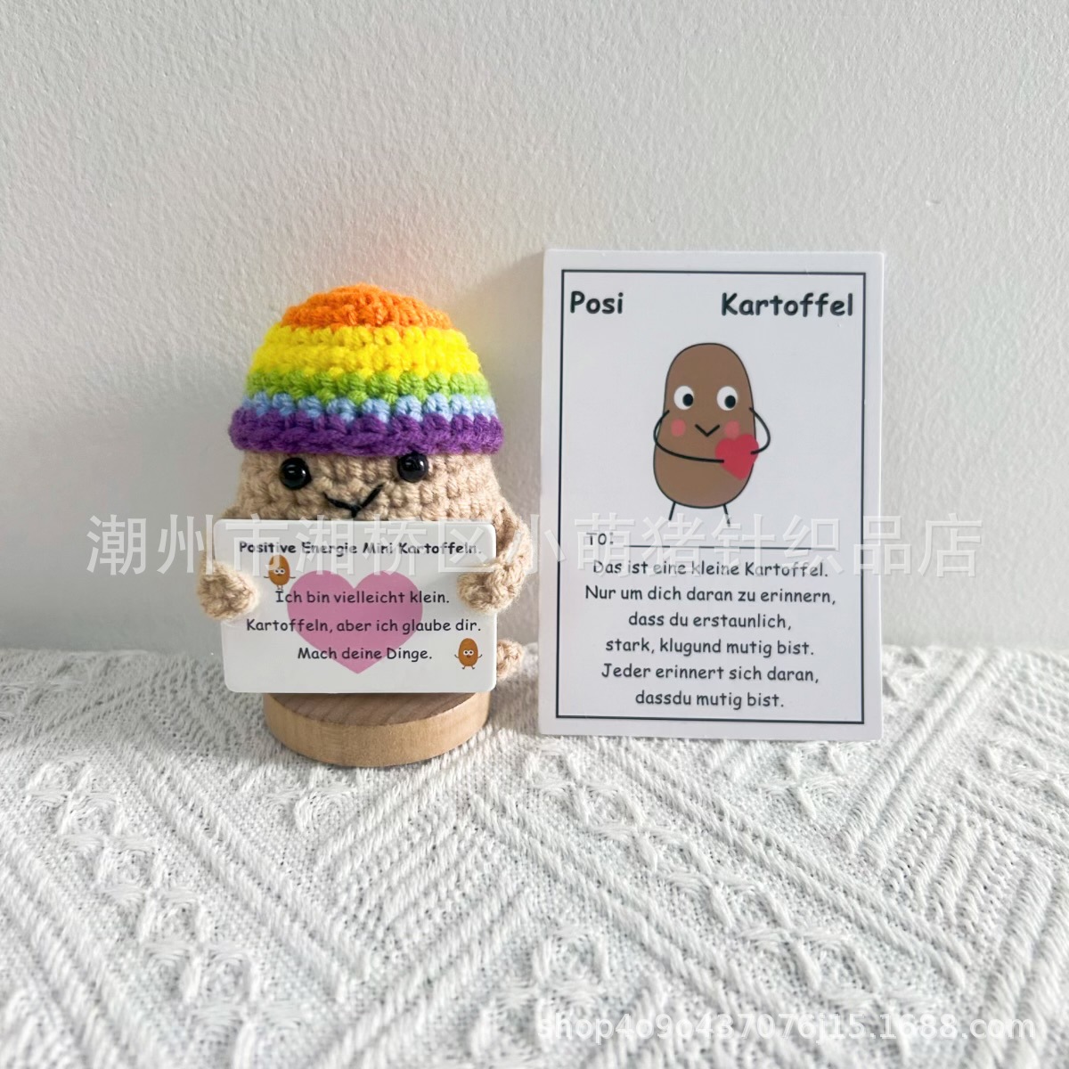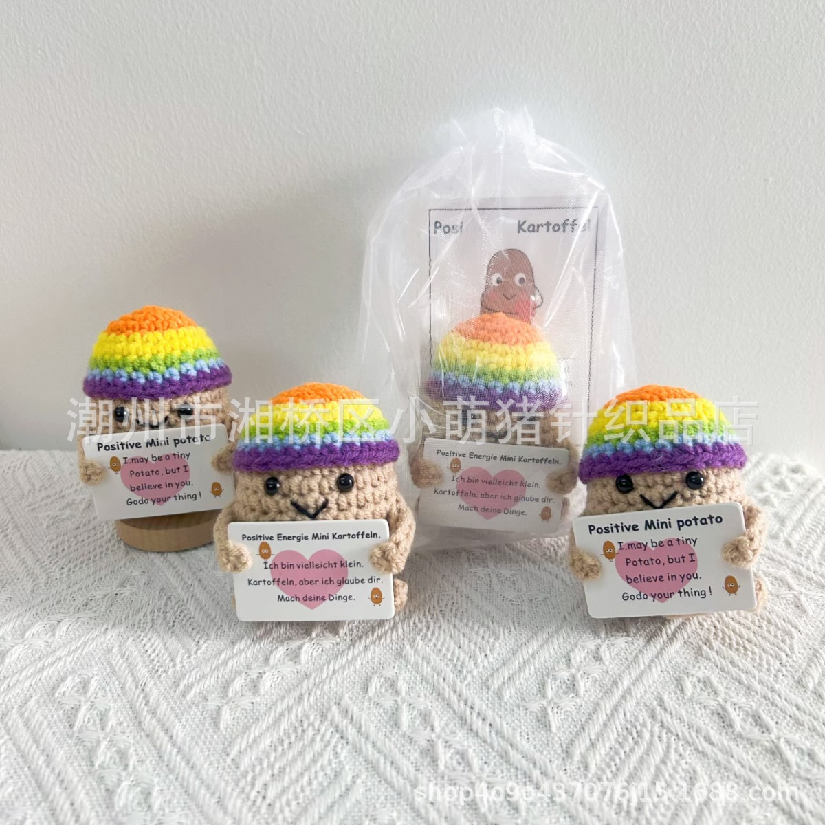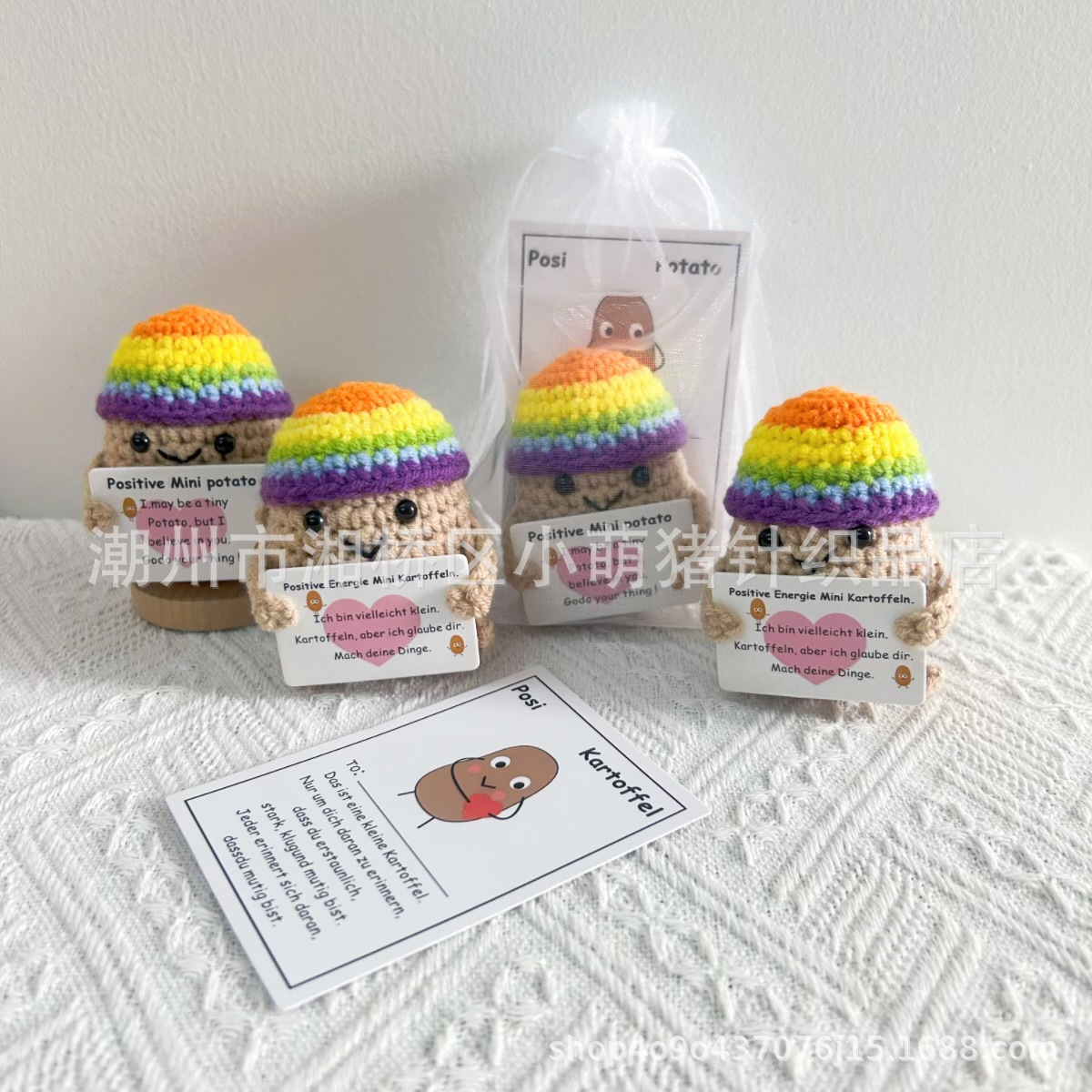국경 뜨거운 손으로 짠 긍정적 인 에너지 재미있는 표현 감자 인형 무지개 모자 사무실 장식품 Y697스토어 가기