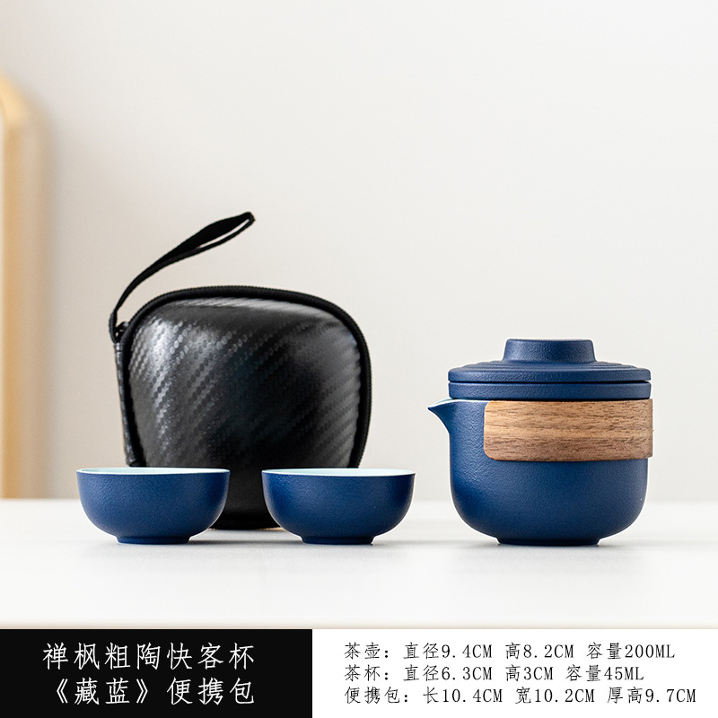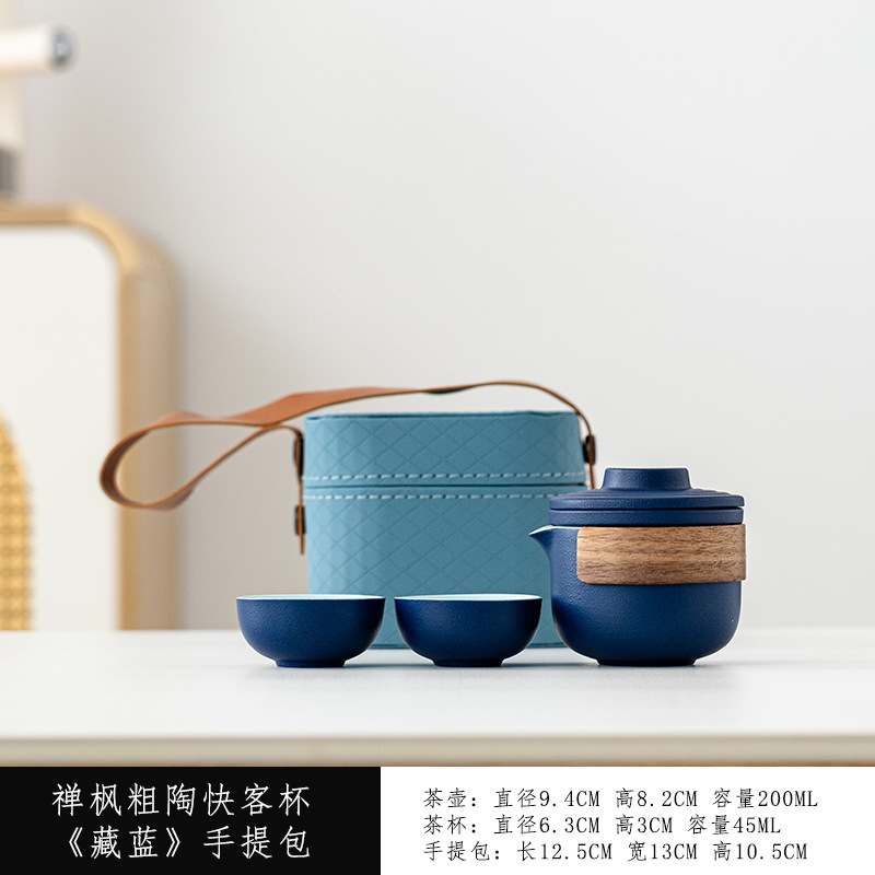 • 선 스타일 냄비 1개, 컵 2개 + 차 트레이 - 사파이어 블루(휴대용 가방)