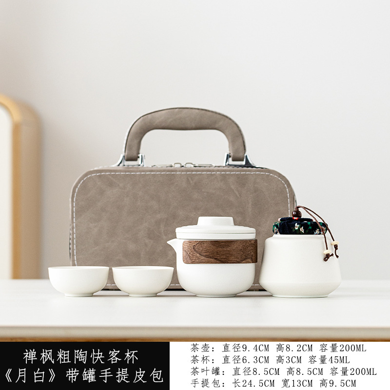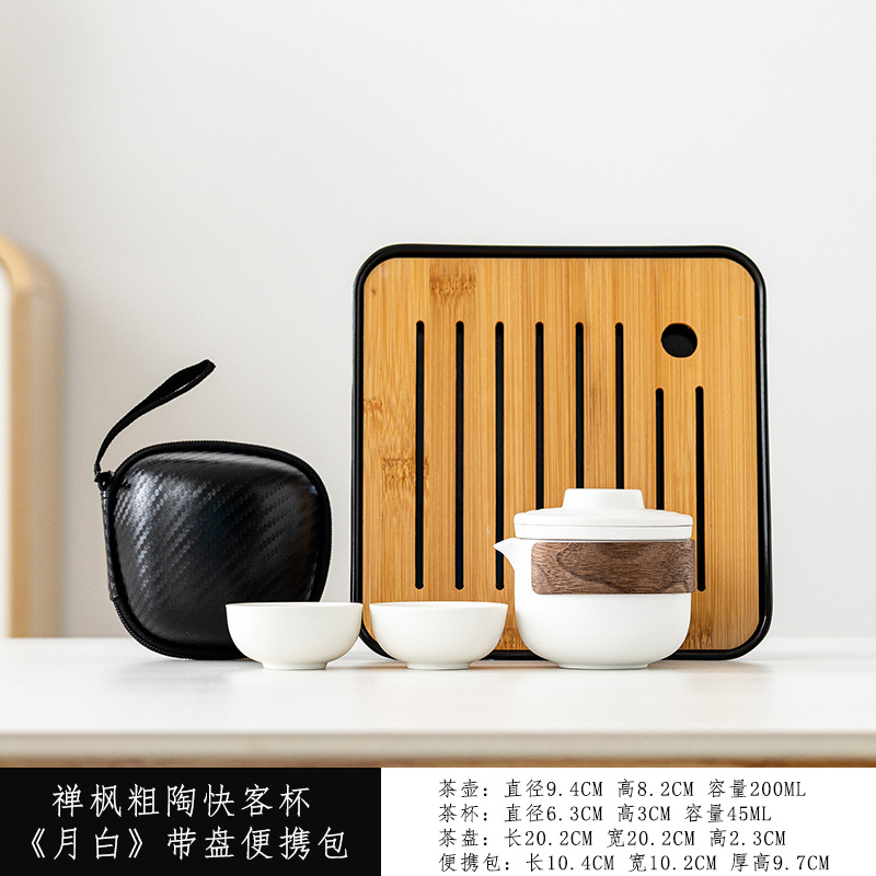 • 선 스타일 냄비 1개, 컵 2개 + 차 트레이 - 일반 흰색(휴대용 가방)