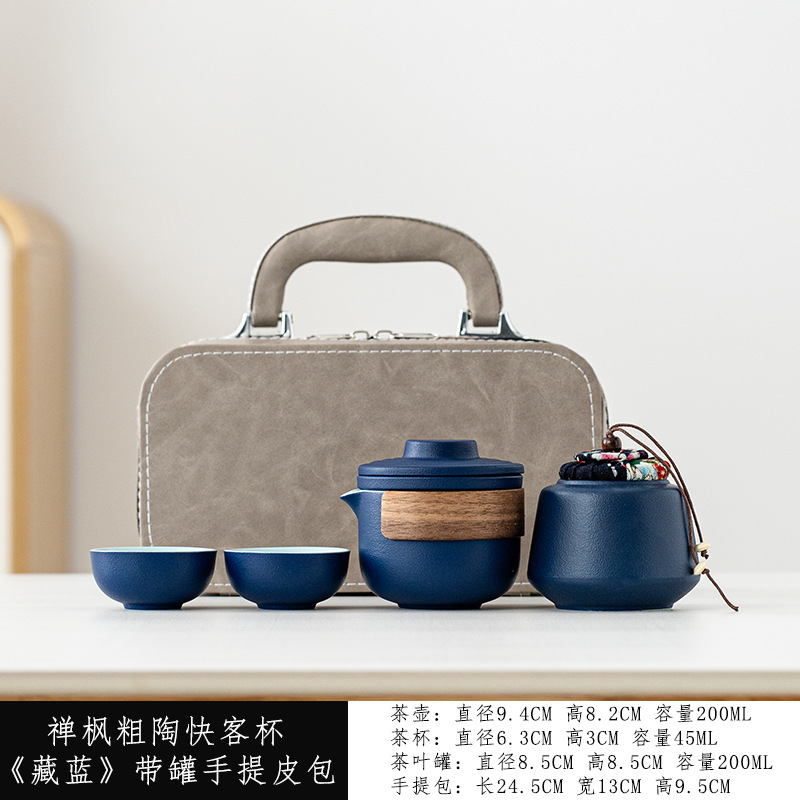• 선 스타일 냄비 1개, 컵 2개 + 차 캔 - 사파이어 블루(비즈니스 가방)