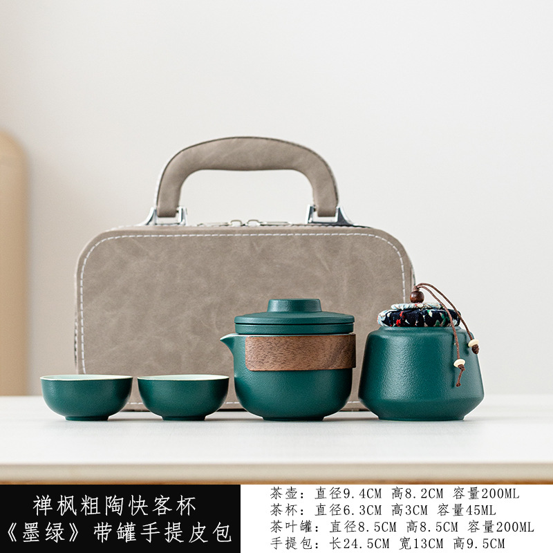 • 선 스타일 냄비 1개, 컵 2개 + 차 캔 - 다크 그린(비즈니스 가방)