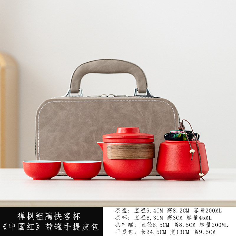 • 선 스타일 냄비 1개, 컵 2개 + 차 트레이 - 시홍(휴대용 가방)
