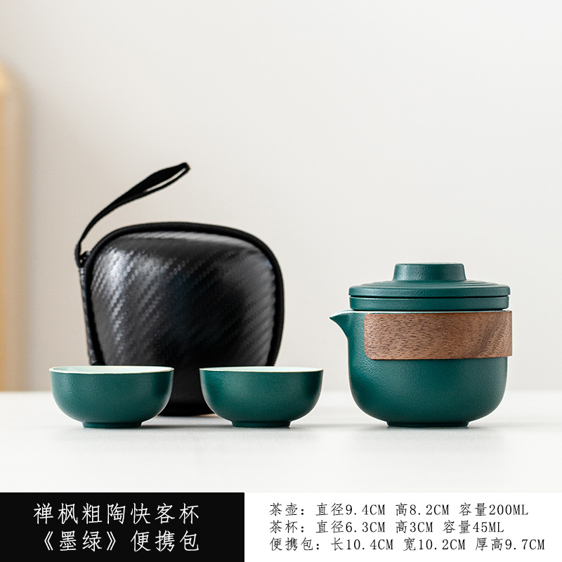 • 선 스타일 냄비 1개, 컵 2개 + 차 트레이 - 진한 녹색(휴대용 가방)