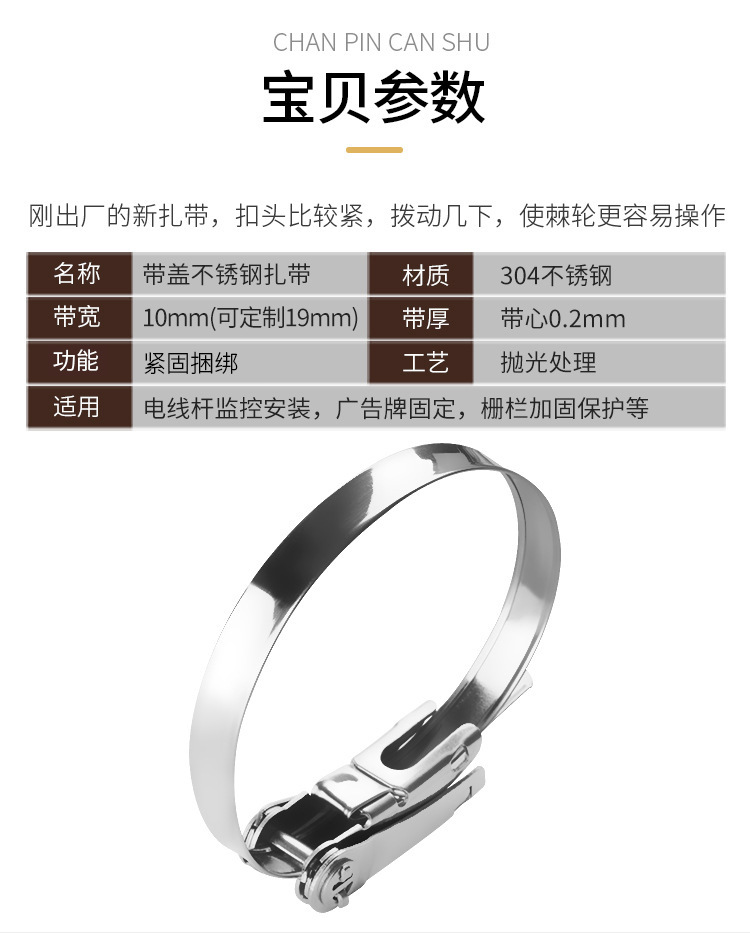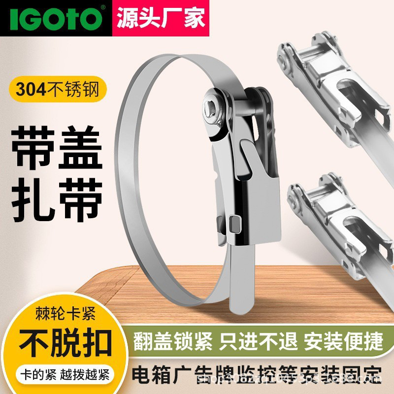 공장 도매 304 스테인레스 스틸 케이블 타이 래칫 버클 뚜껑 10mm19mm 전기 상자 모니터링 스트랩스토어 가기
