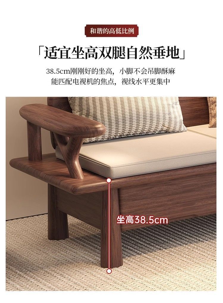 새로운 중국식 검은 호두 나무 소파 조합 가구 거실 크고 작은 아파트 실용적인 저장 소파 다기능스토어 가기