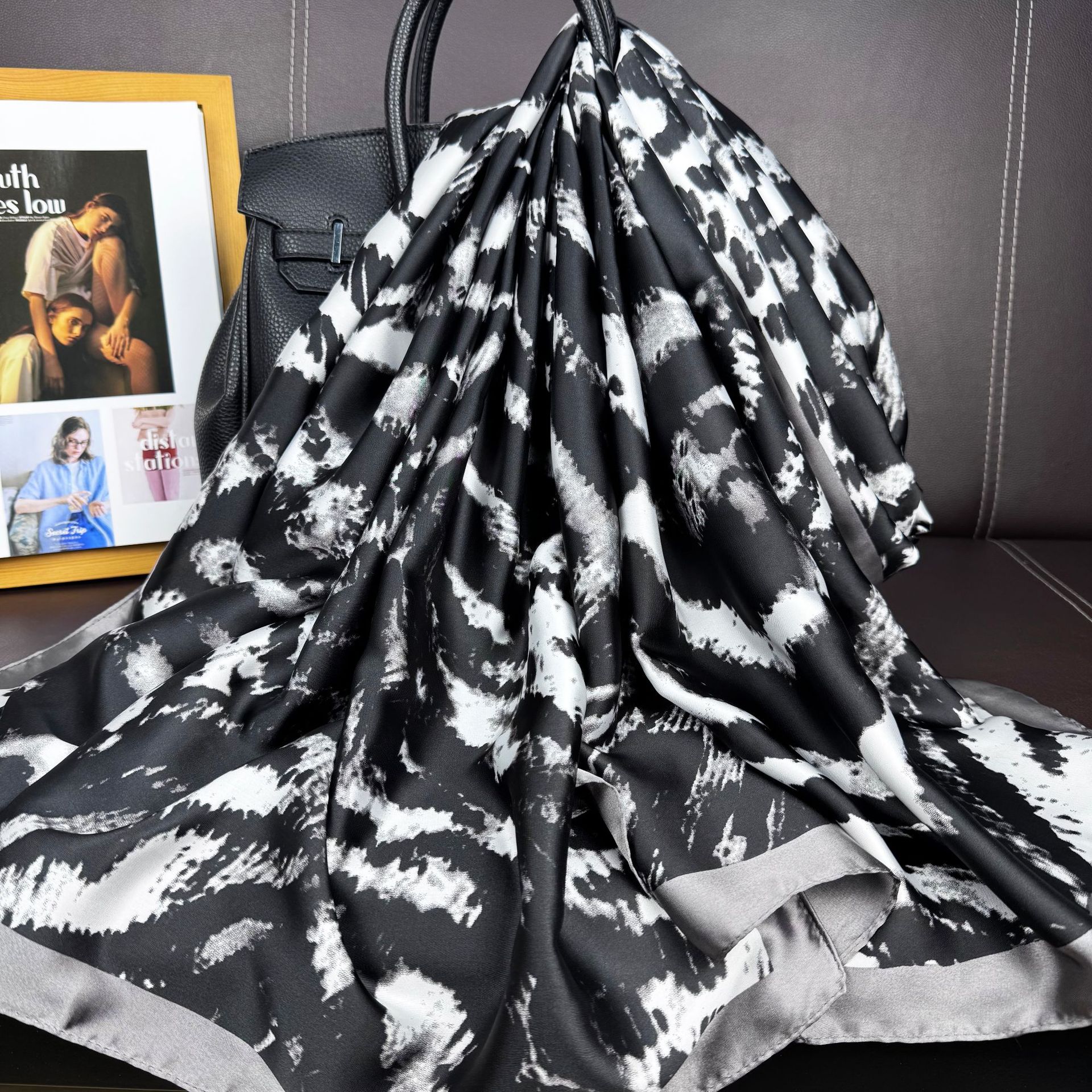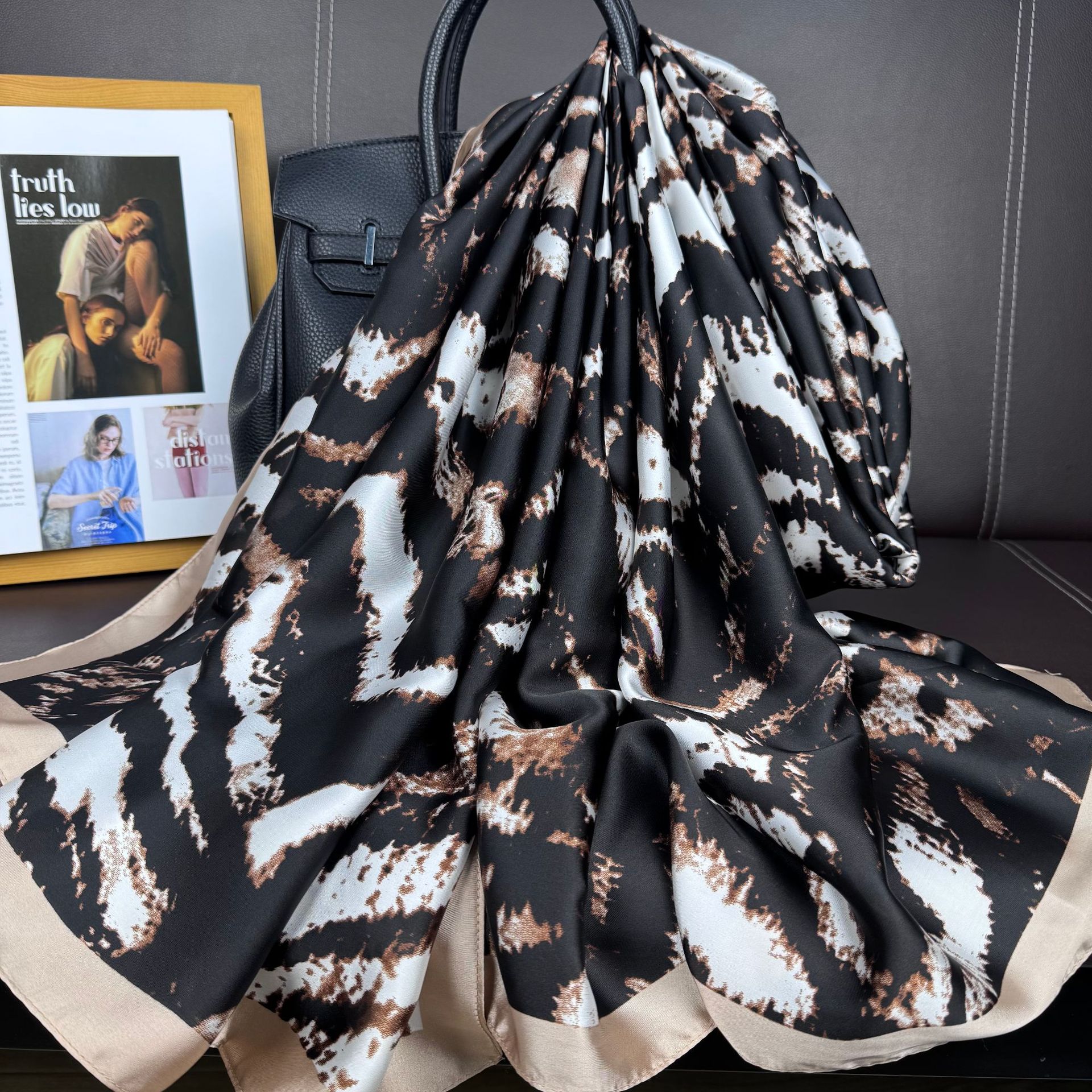 유럽과 미국의 패션 흑백 레오파드 무늬 질감 인쇄 긴 스카프 한국식 올 매치 여성 장식 아우터 목도리 스카프
