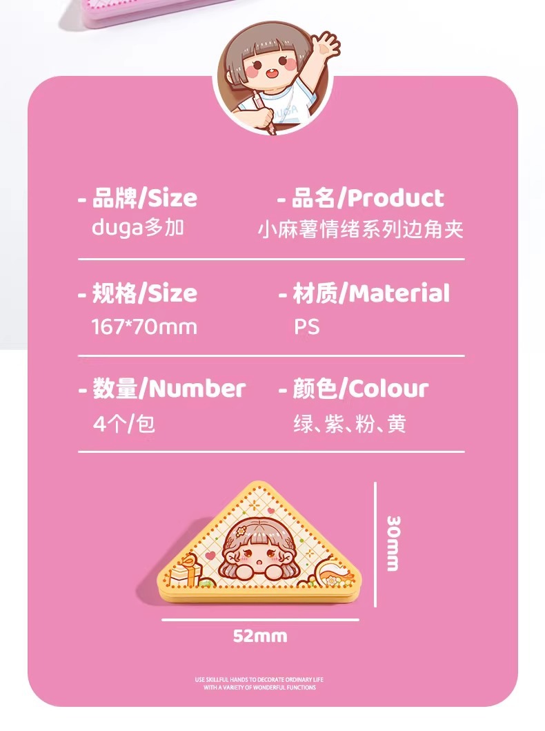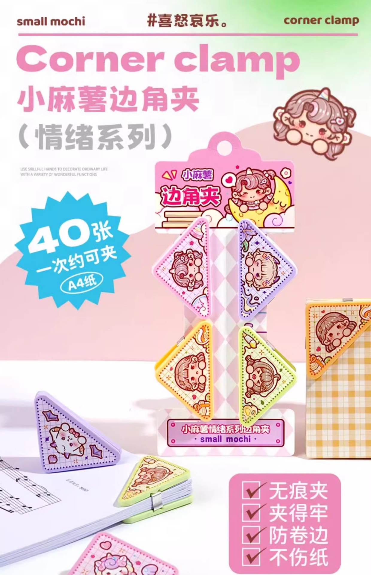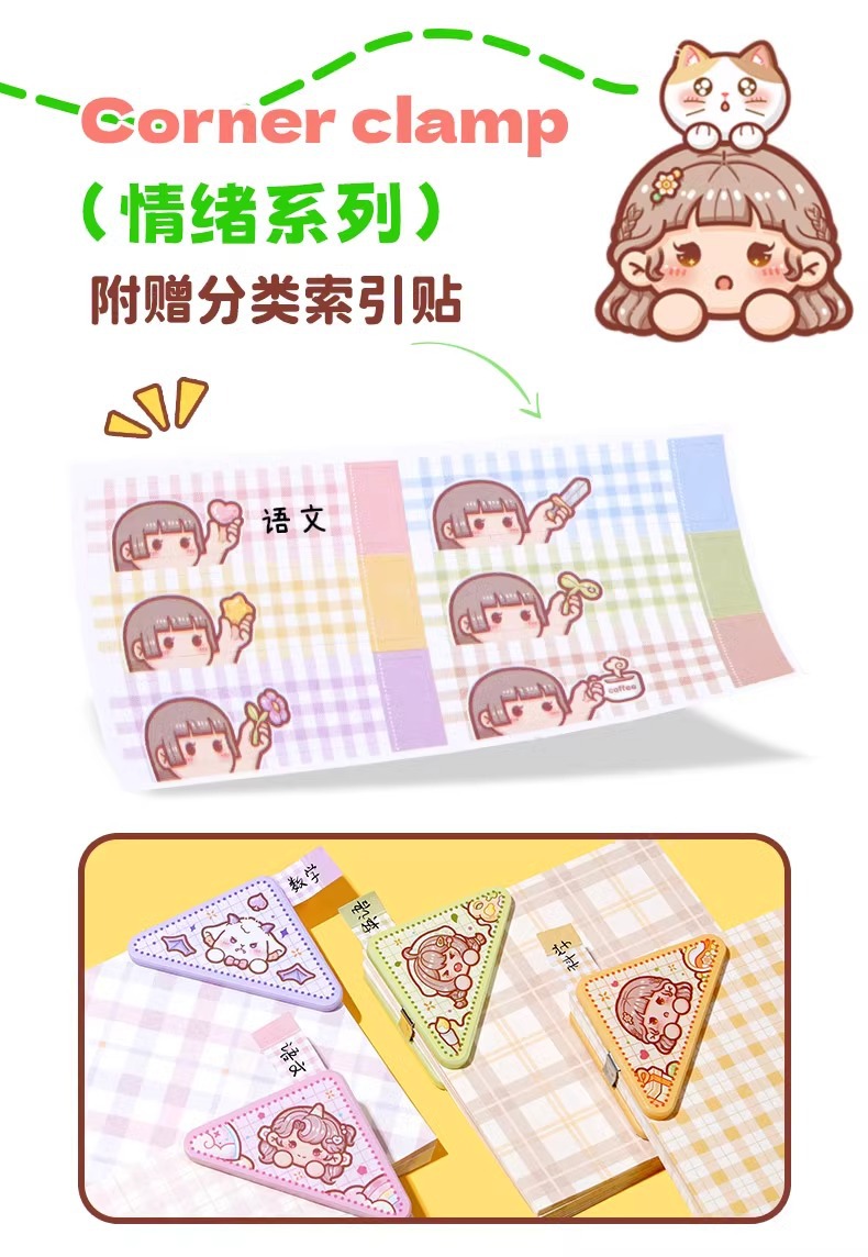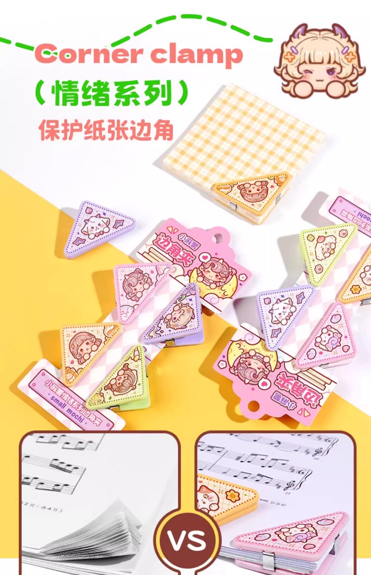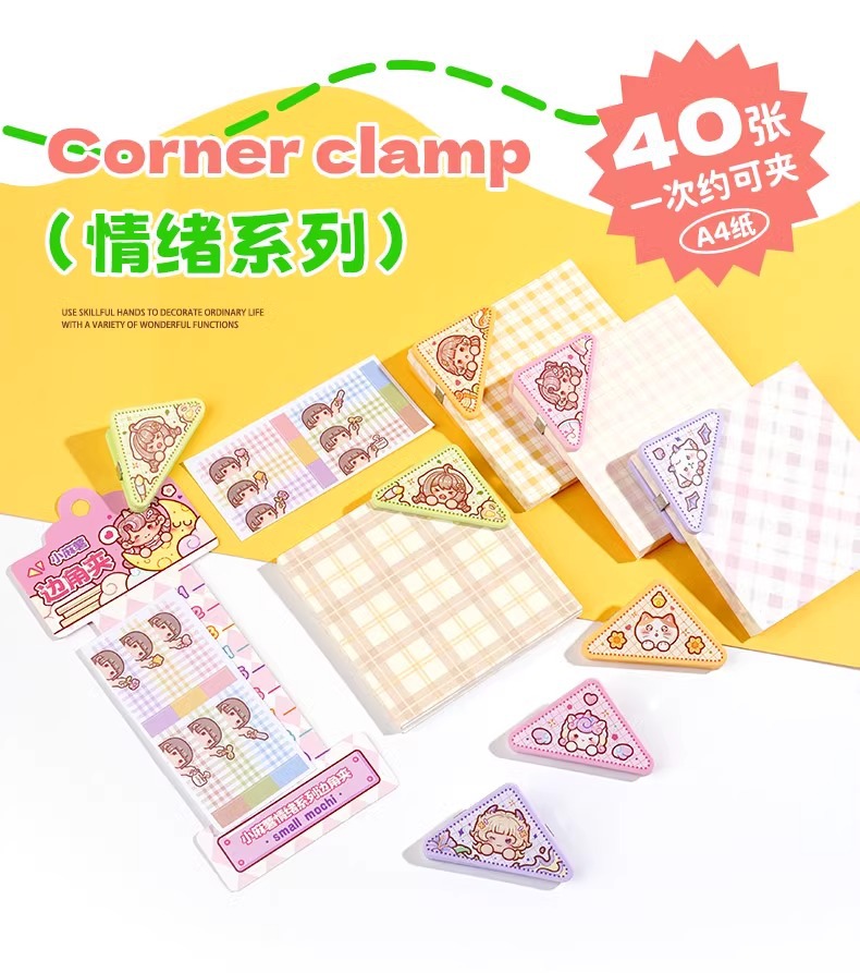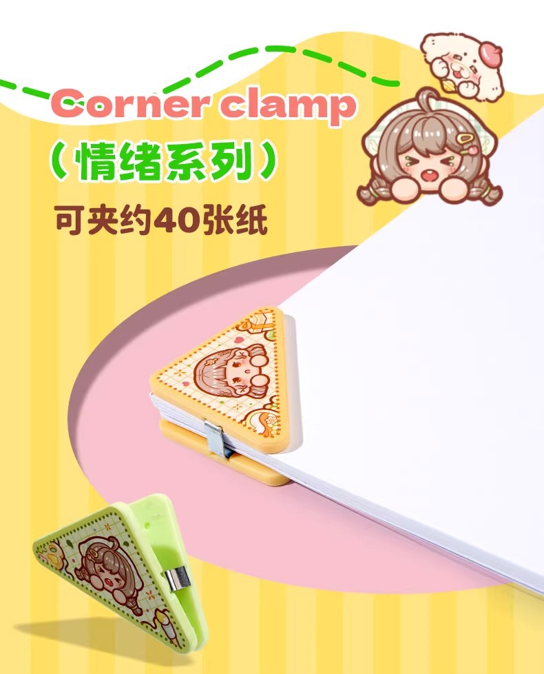 작은 감자 사이드 코너 클립 새로운 삼각형 클립 감정적 인 시리즈 테스트 종이 클립 삼각형 폴더 학생 스토리지 마무리 클립