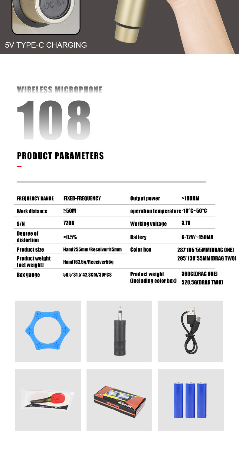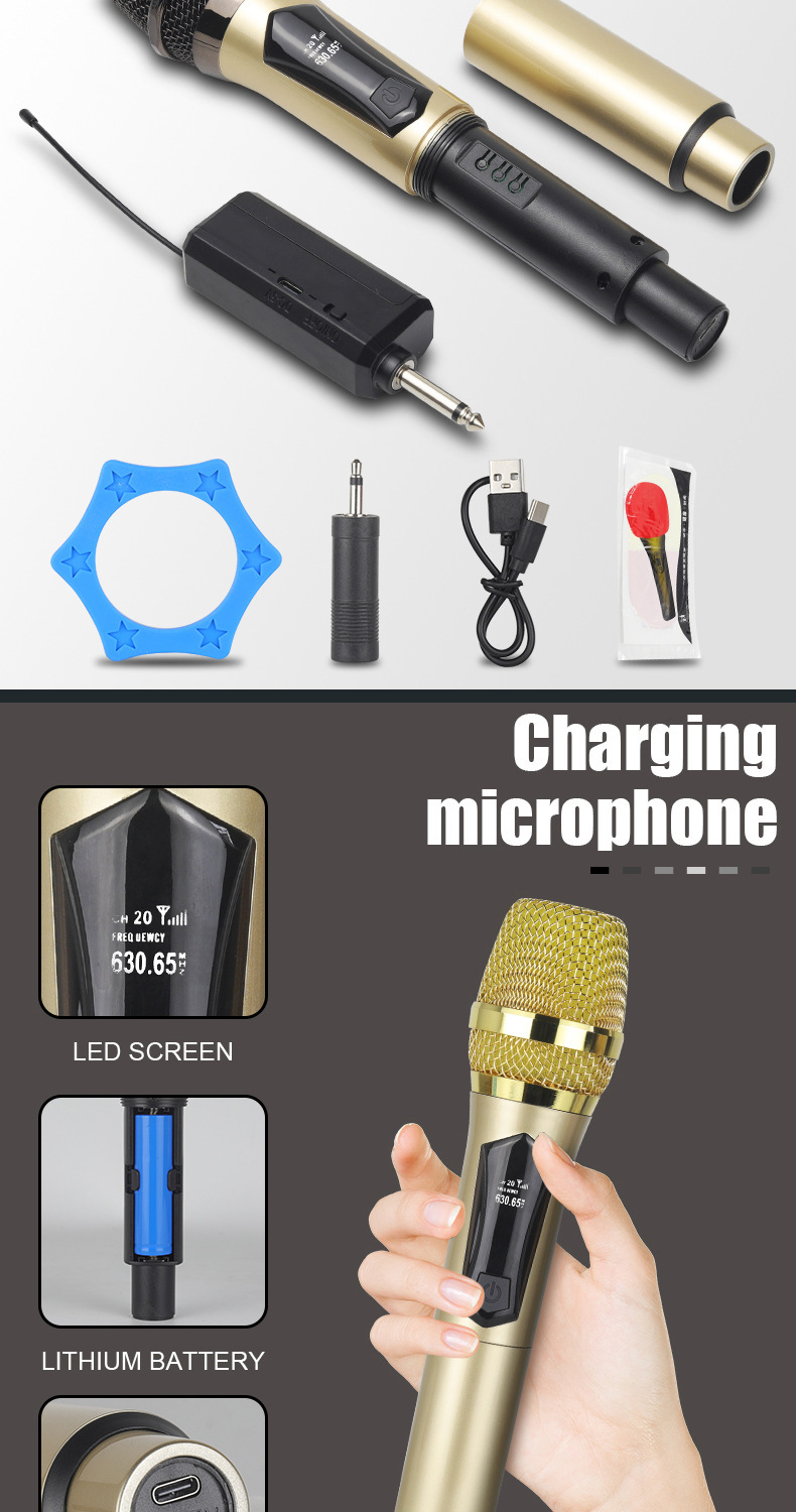 전문가용 충전식 무선 마이크 1대2 무대용 가정용 KTV 온라인 노래방 야외 오디오 회의용 공장 직판스토어 가기