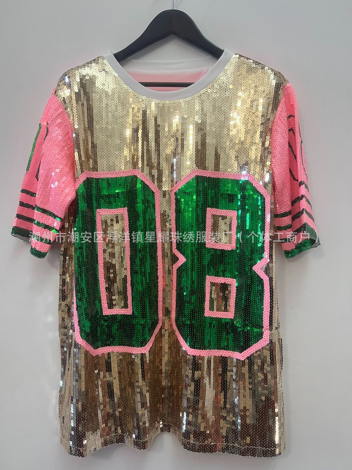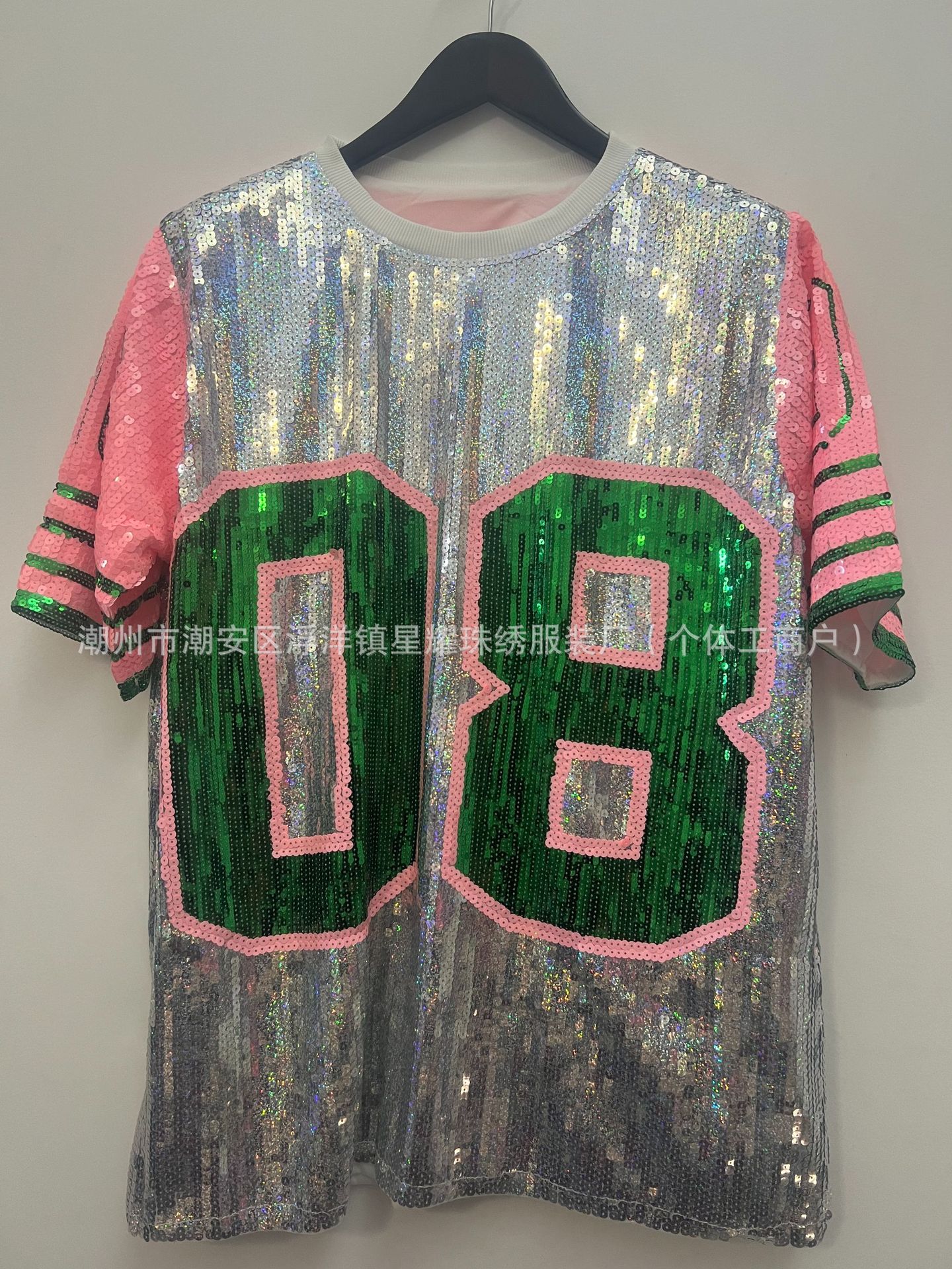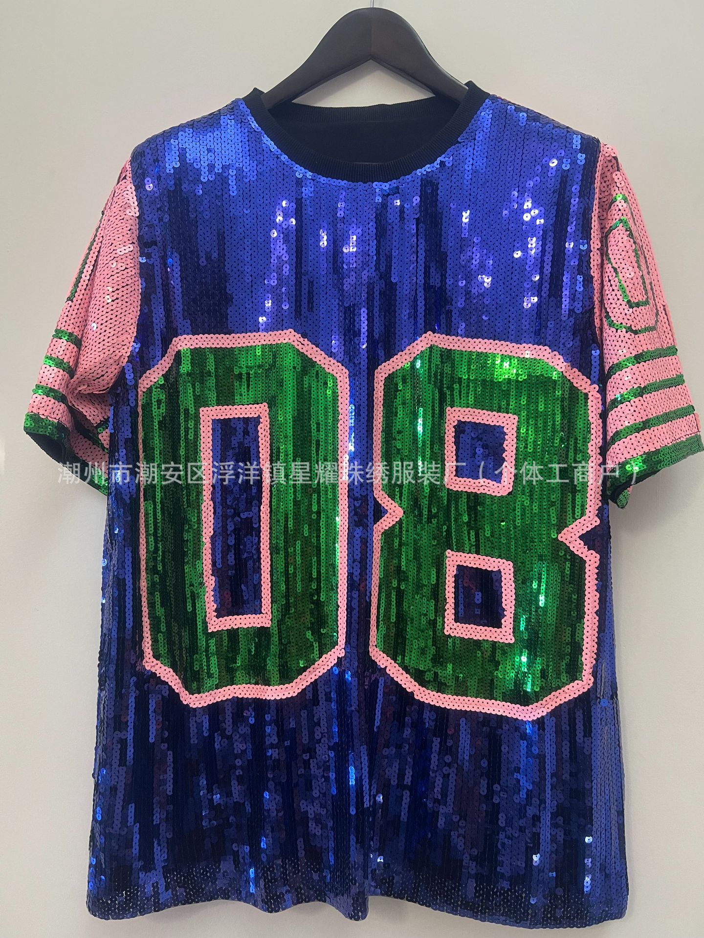 스팽글 여성 의류 스팟 국경 간 전자 상거래 공급 스팽글 티셔츠 스팽글 셔츠 스팽글 유니폼 중공업 스팽글